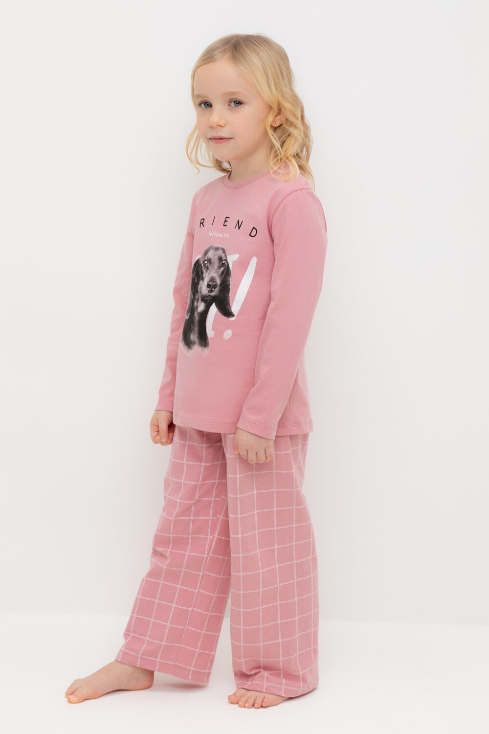 Пижама для девочки, Crockid К 1623/дымчатая роза,двойная клетка р 80/152