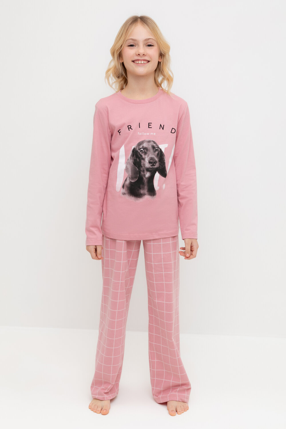 Пижама для девочки, Crockid К 1623/дымчатая роза,двойная клетка р 76/146