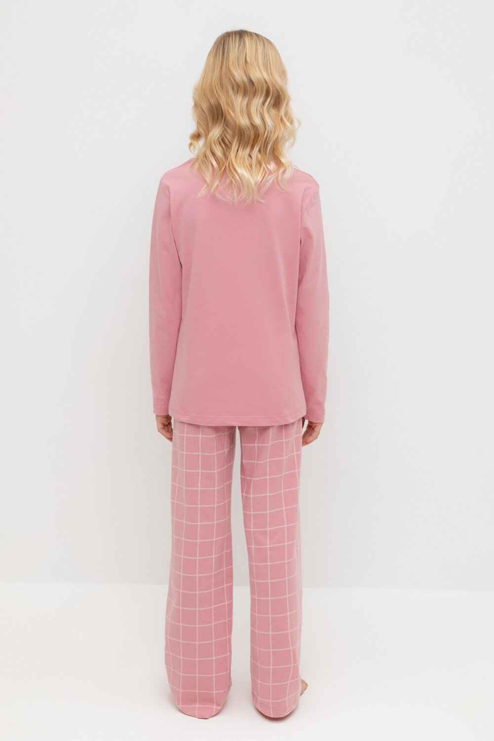 Пижама crockid К 1623/дымчатая роза,двойная клетка, размер 76/146, розовый