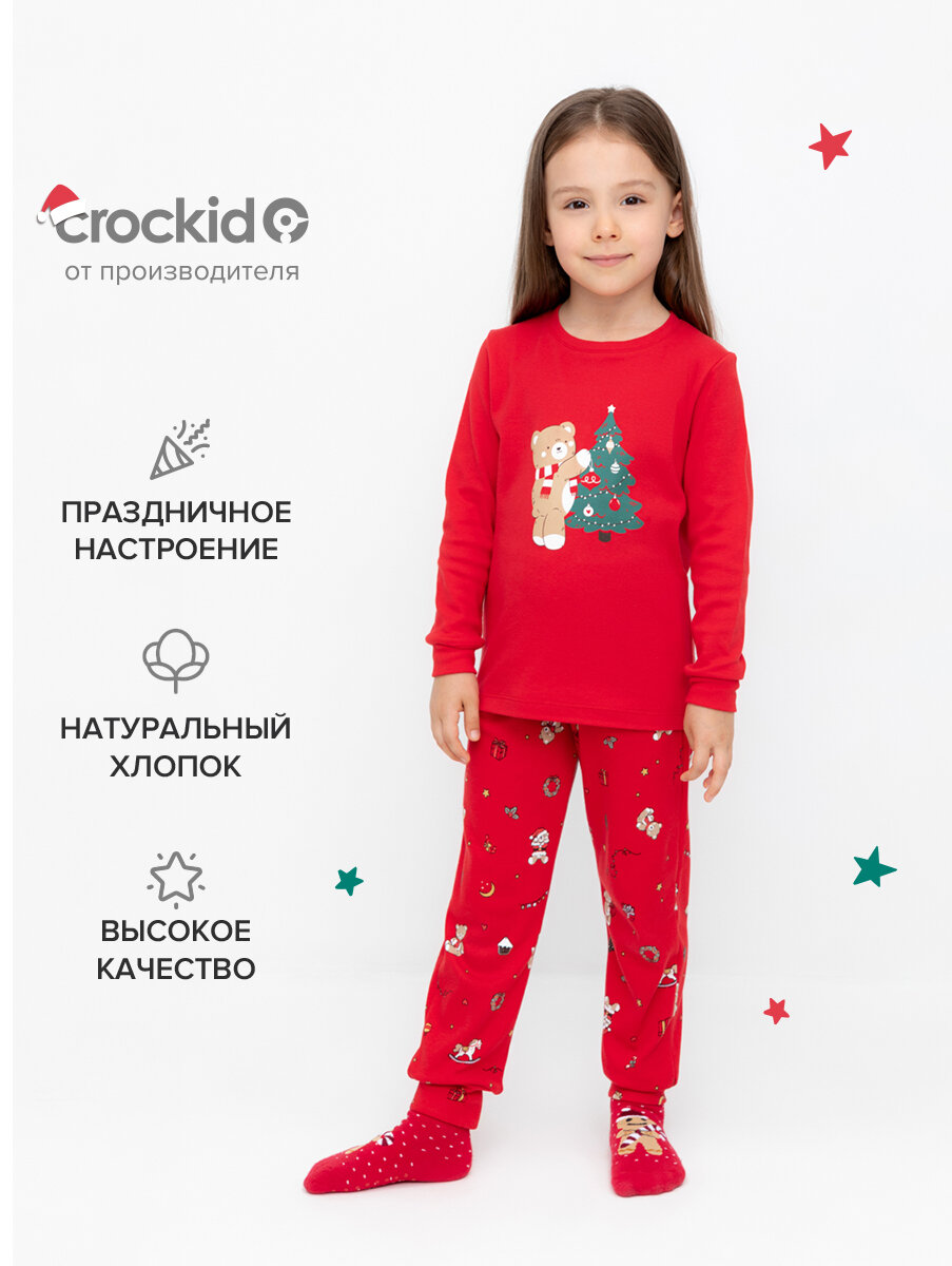 Купить Пижама crockid К 1541/насыщенно-красный,мишки на празднике, размер 52/92, красный