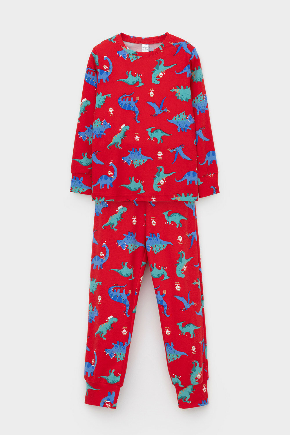 Пижама crockid К 1541/насыщенно-красный,динозавры, размер 60/116, красный