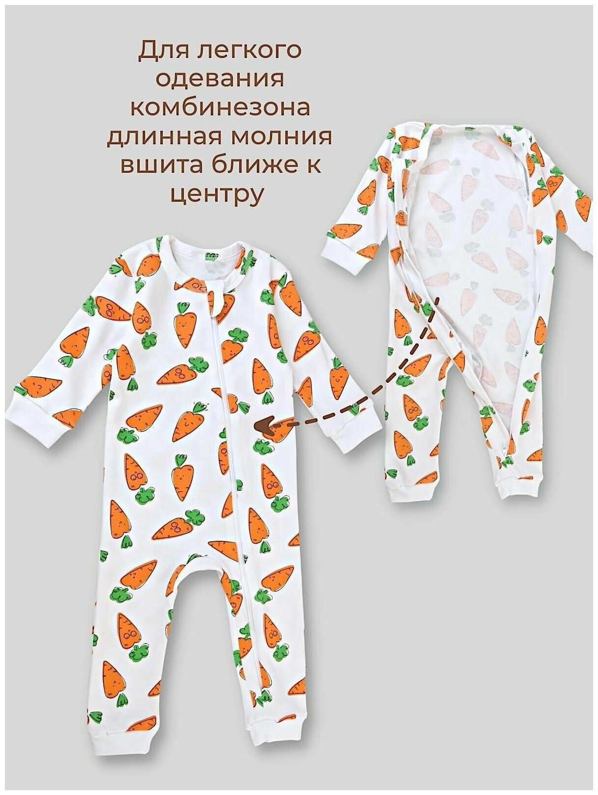 Комбинезон нательный слип детский на молнии Bebo нательный для малышей, девочки и мальчика, морковки, 74 см.