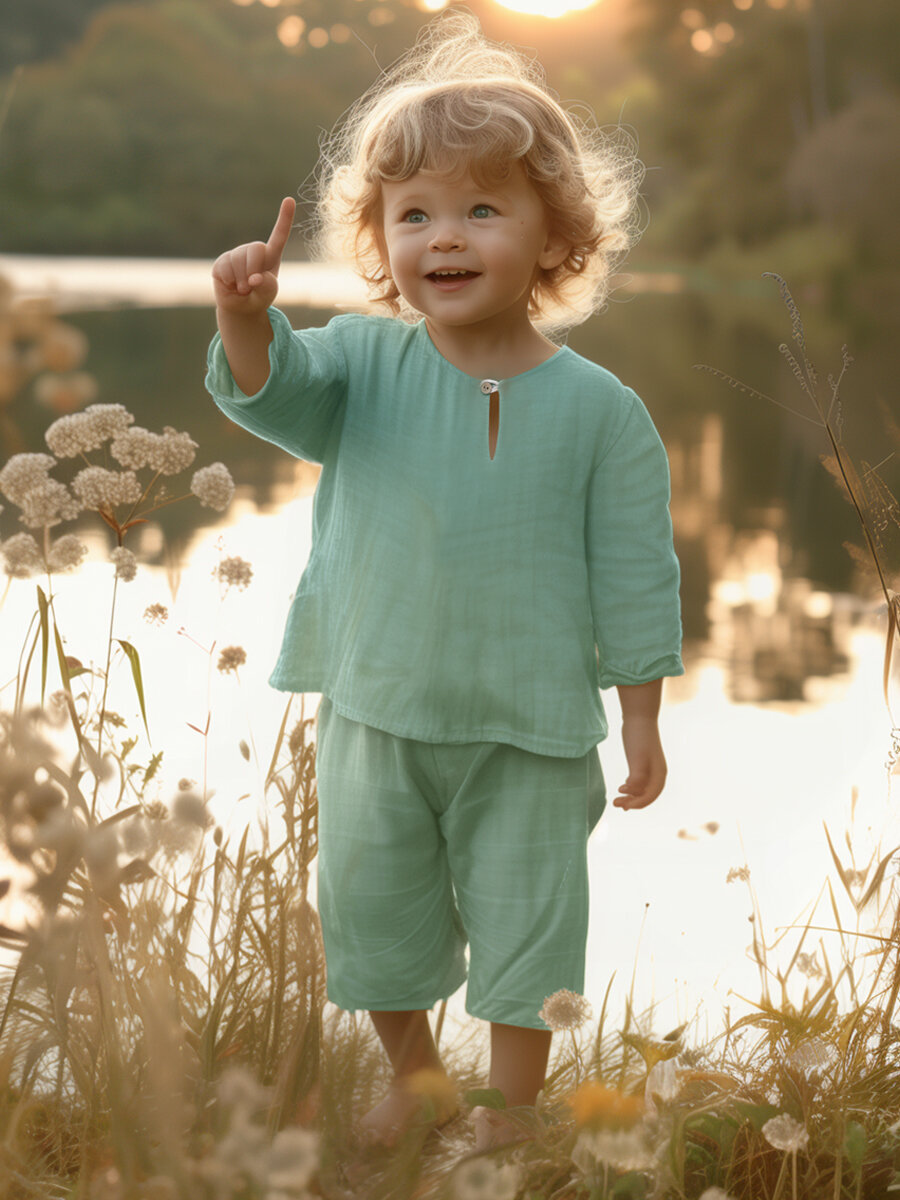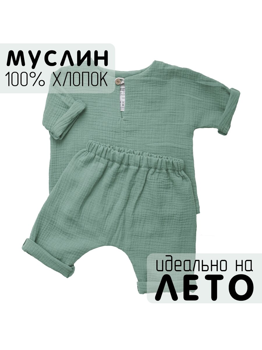 Комплект (рубашка и штанишки) Самурай муслин Морской