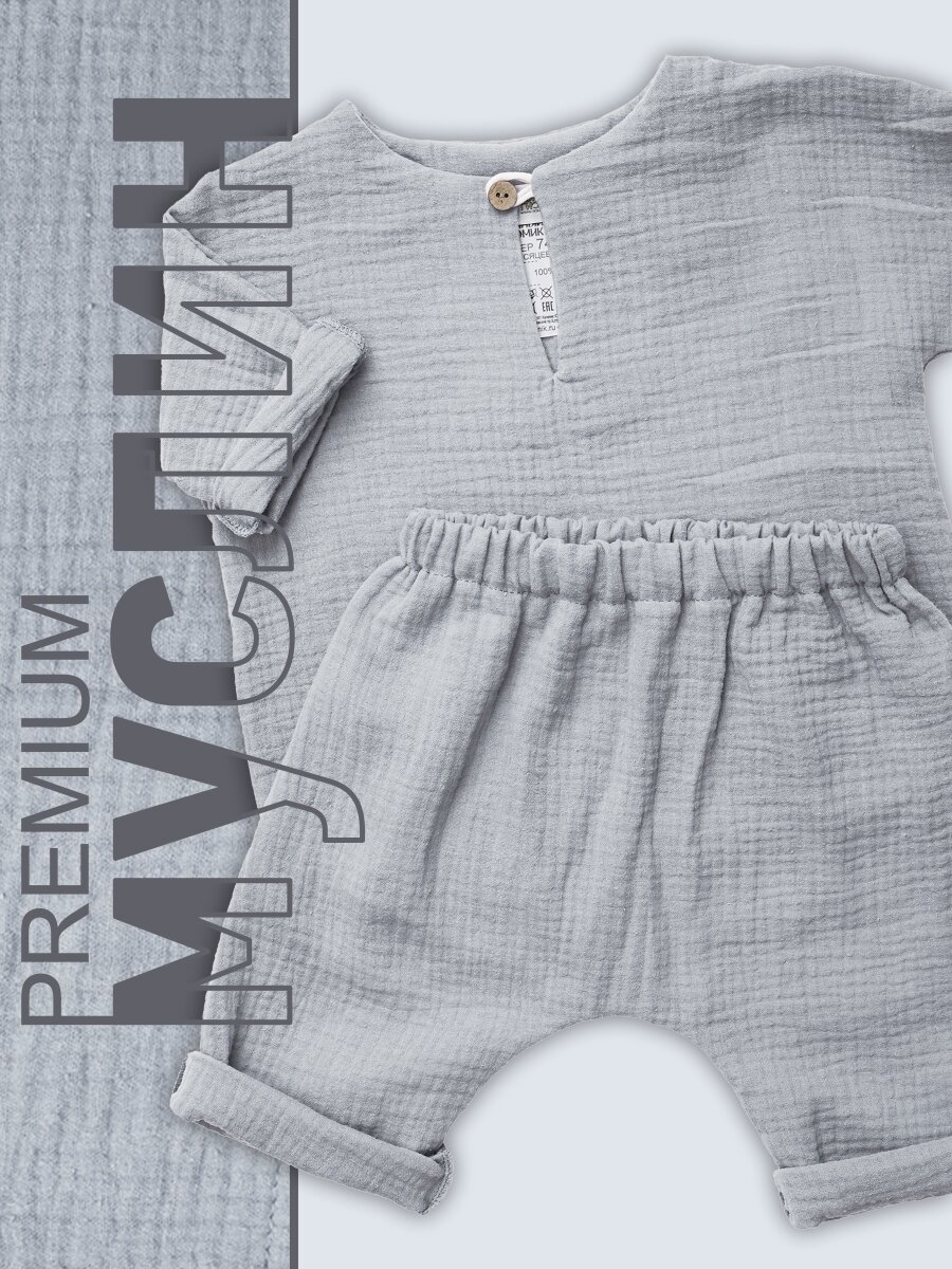 Комплект (рубашка и штанишки) Самурай муслин Серо-голубой