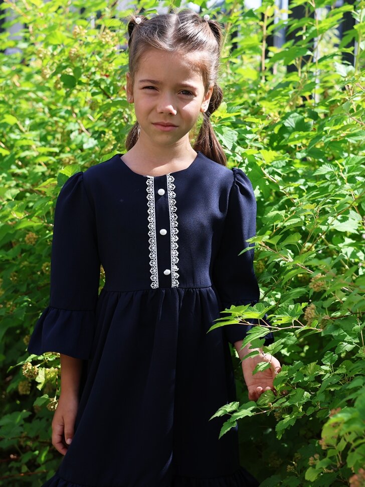 Школьное платье Бушон Школа, размер 122-128, темно-синий интересное: