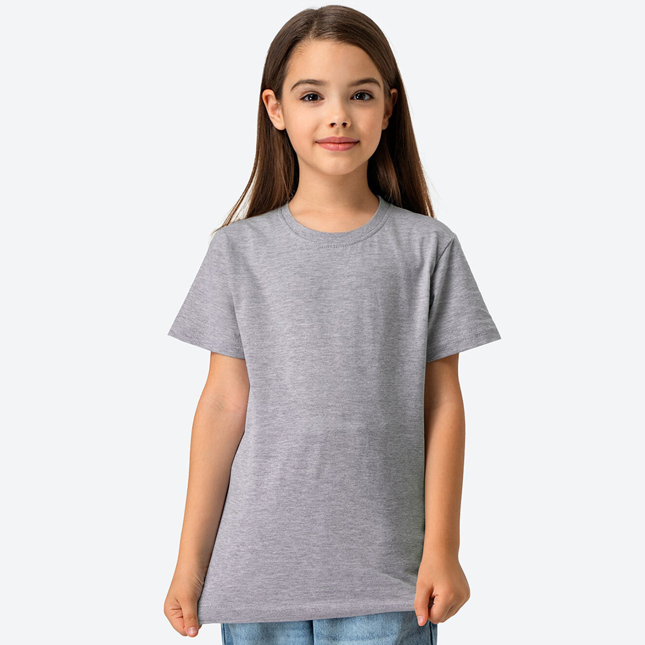 Детская базовая однотонная футболка, HappyFoxHF5501 серыймеланж 164