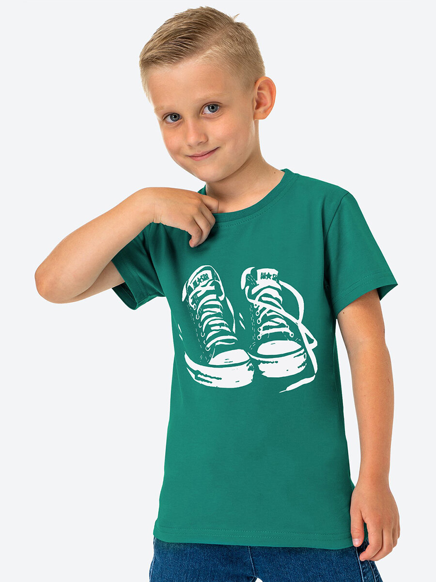 Футболка с принтом детская хлопок HappyFox HF55012 изумруд 128