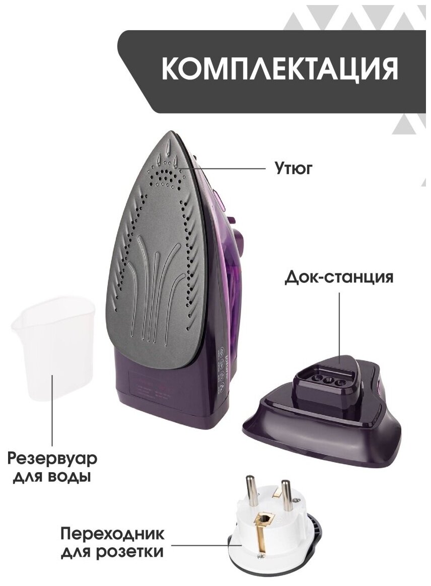 | Плюсы: | Легкий вес, сьемная платформа, позволяющая гладить без провода. |