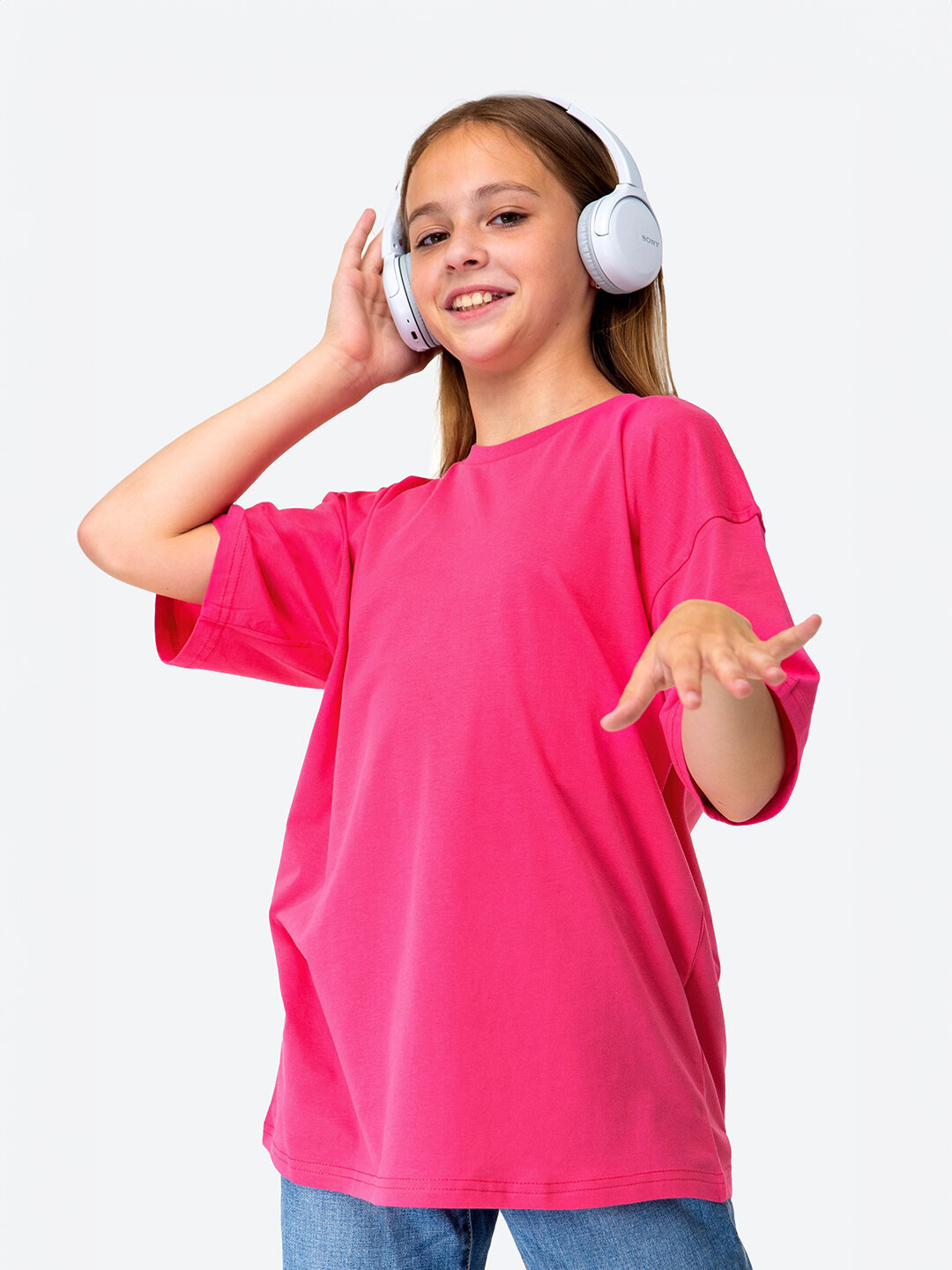 Футболка оверсайз для девочки подростка розовая хлопок HappyFox, HF0178SP размер 158, цвет малиновый