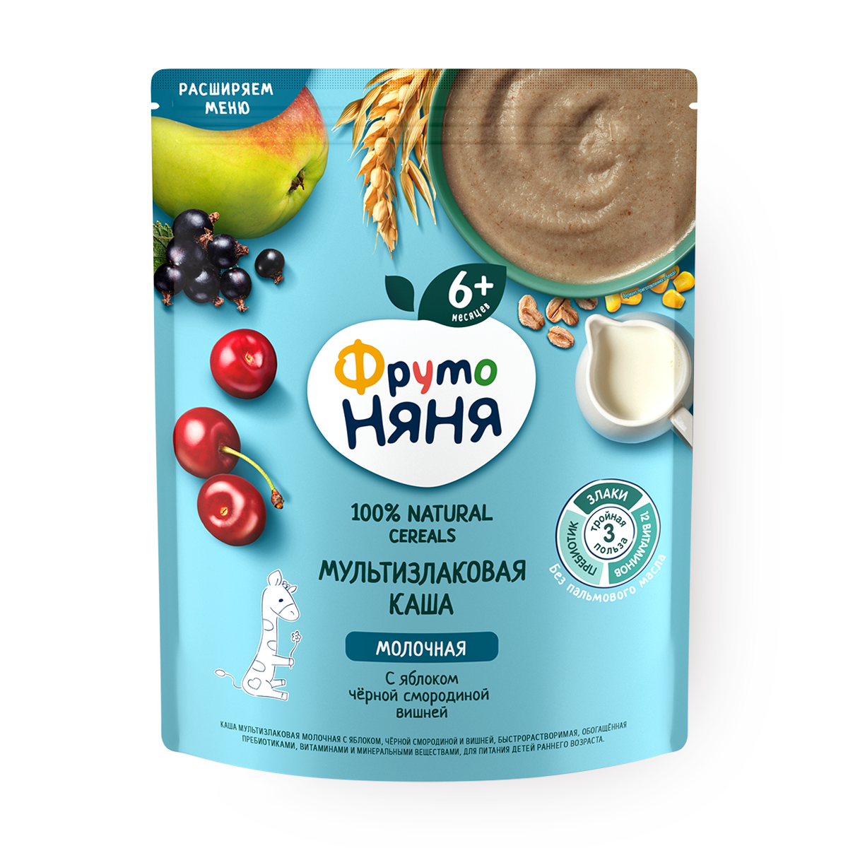 ФрутоНяня Каша Мультизлаковая с Яблоком, Черной Смородиной и Вишней с Молоком {с 6 мес} 200г