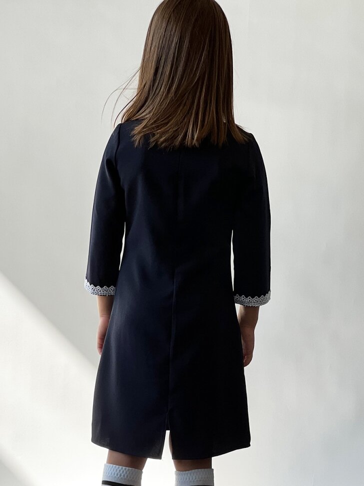 Платье для девочки школьное бушон SK2410, цвет темно-синий (140-146)