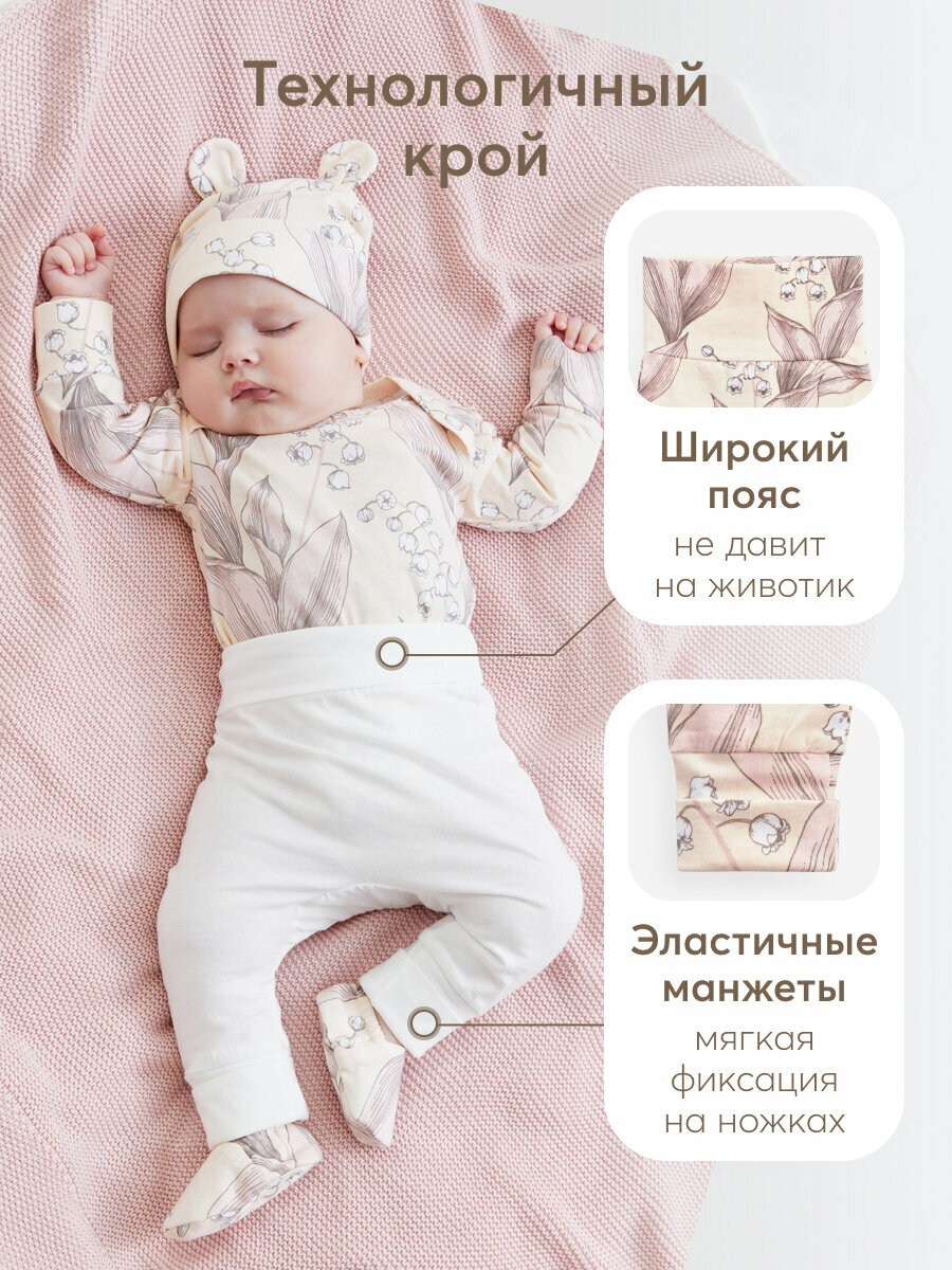 90113, Ползунки (штанишки) для новорожденных Happy Baby, для мальчика, девочки набор 2 шт, бежевые с цветами и белые, рост 56
