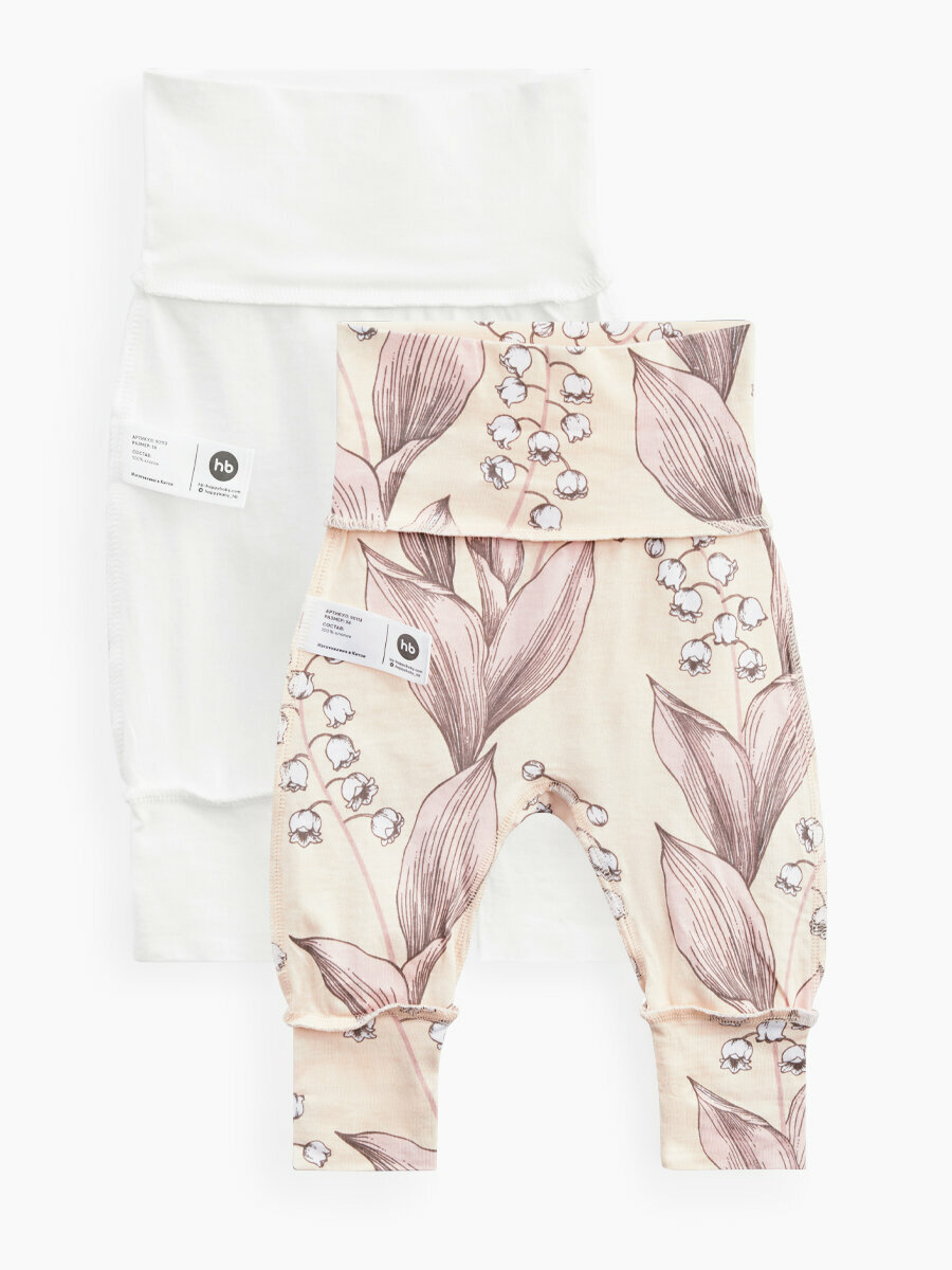 90113, Ползунки (штанишки) для новорожденных Happy Baby, для мальчика, девочки набор 2 шт, бежевые с цветами и белые, рост 56