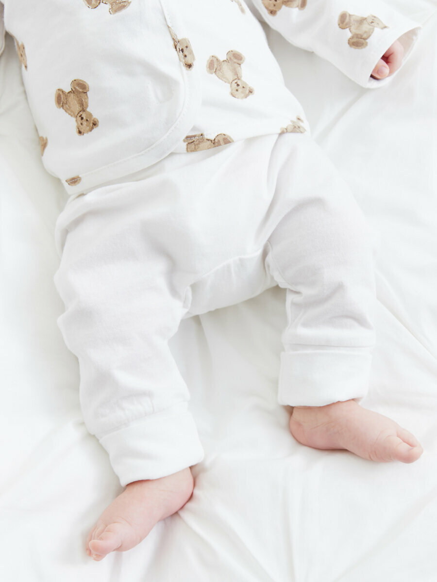 90113, Ползунки (штанишки) для новорожденных Happy Baby, для мальчика, девочки набор 2 шт, белые с мишками и белые, рост 80