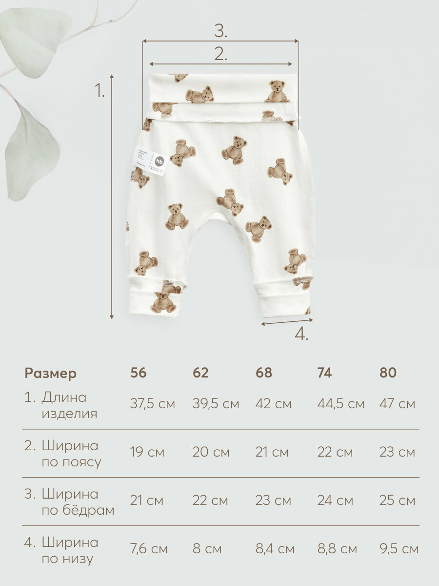 90113, Ползунки (штанишки) для новорожденных Happy Baby, для мальчика, девочки набор 2 шт, бежевые с мишками и коричневые, рост 68