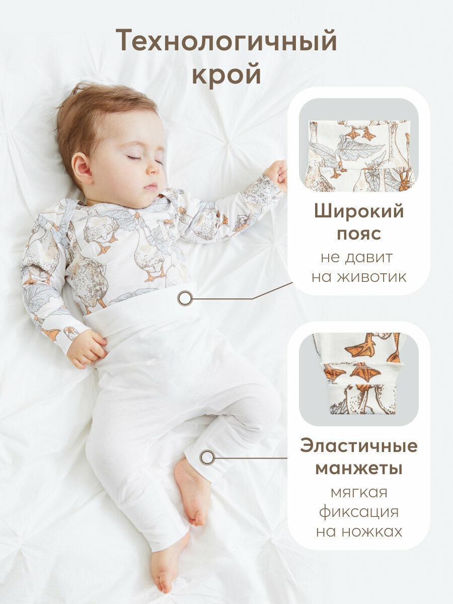 90113, Ползунки (штанишки) для новорожденных Happy Baby, для мальчика, девочки набор 2 шт, белые с гусями и белые, рост 74