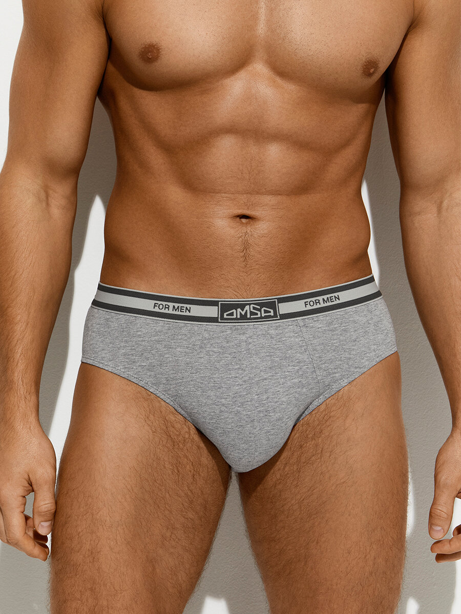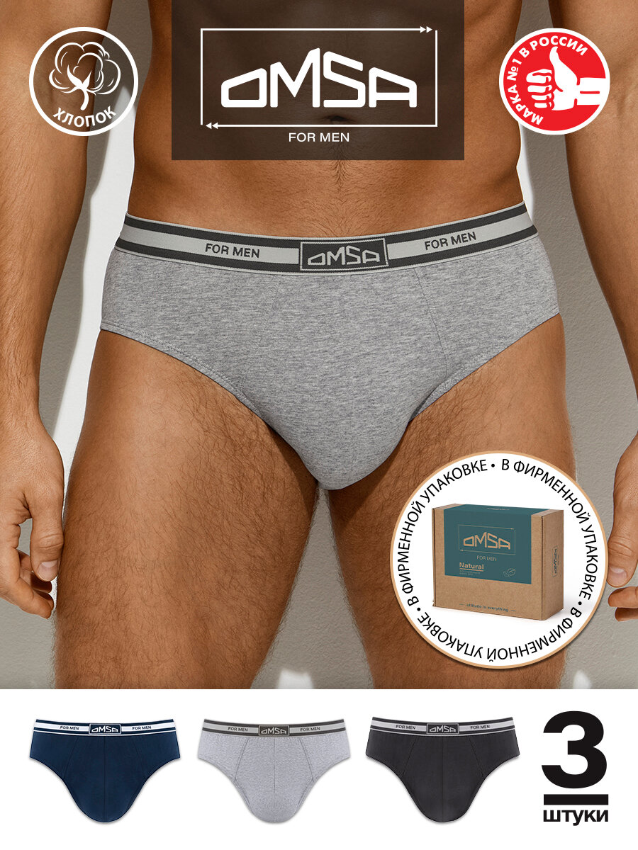 Трусы мужские B_OmB1224 Слипы с открытой резинкой, COTTON Jeans/Grigio Melange/Grigio Scuro 48(L) комплект 3шт