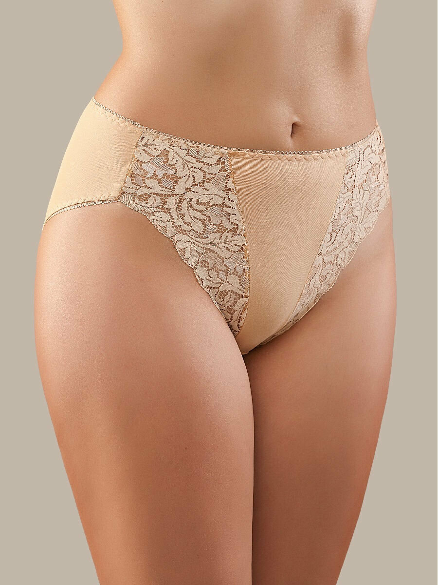 Трусы SeNso Трусы-миди женские с высокой посадкой Senso.Слипы из хлопка с высокой талией и кружевными вставками, размер 44, бежевый