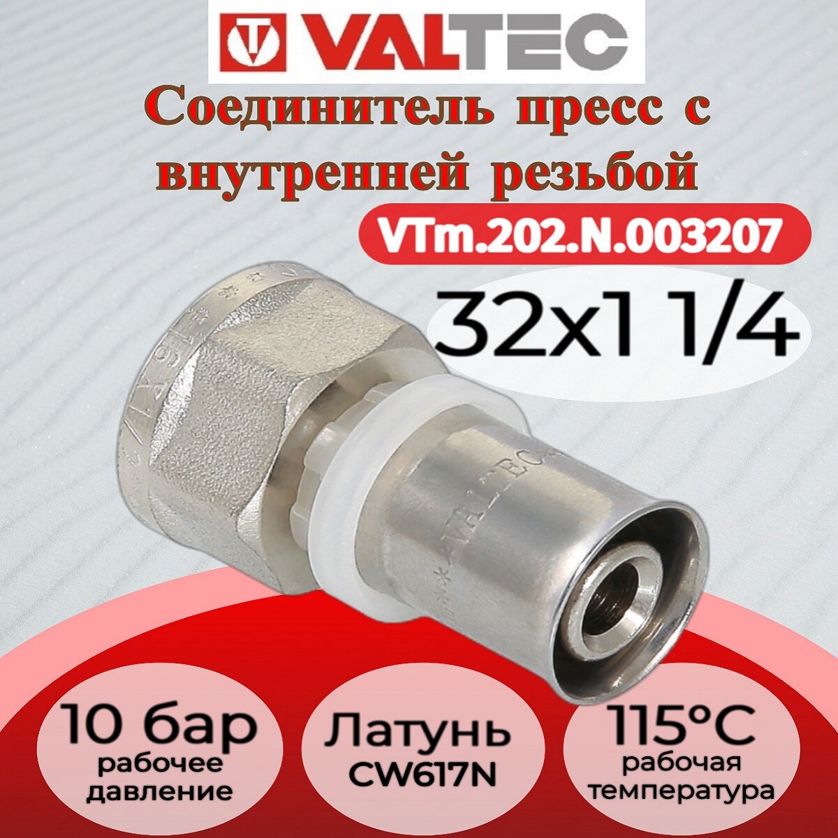 Соединитель пресс с переходом на вн. р. 32х1 1/4" | код. VTm.202.N.003207 | VALTEC ( 1шт. )