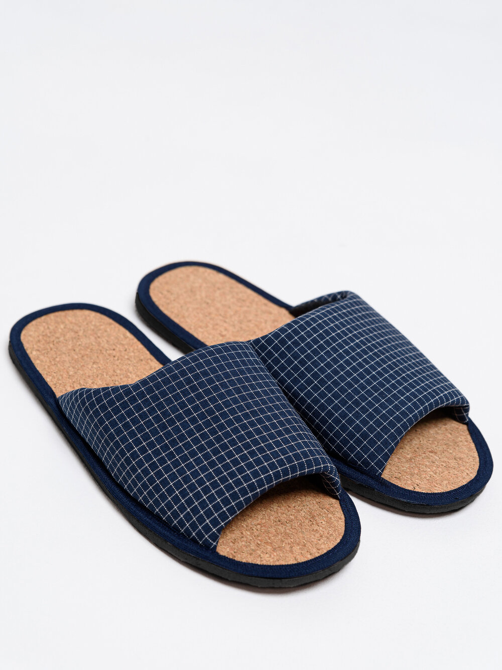 Мужские домашние тапки "LepiloV", открытые, на пробковой стельке. Размер 39. Синяя клетка.