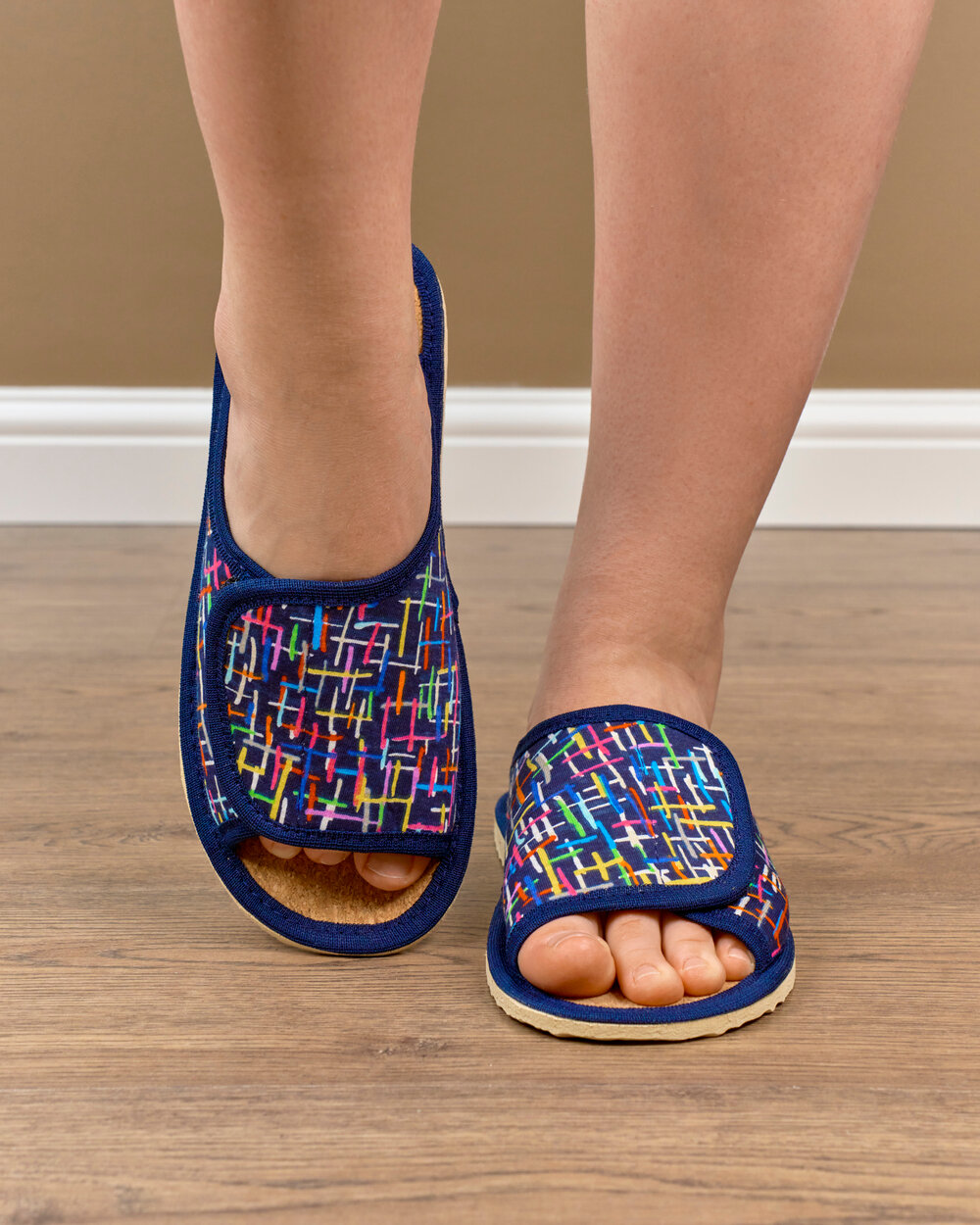 Женские домашние тапочки "LepiloV", открытые, на пробковой стельке и липучке. Размер 42. Синий горох, цветы.
