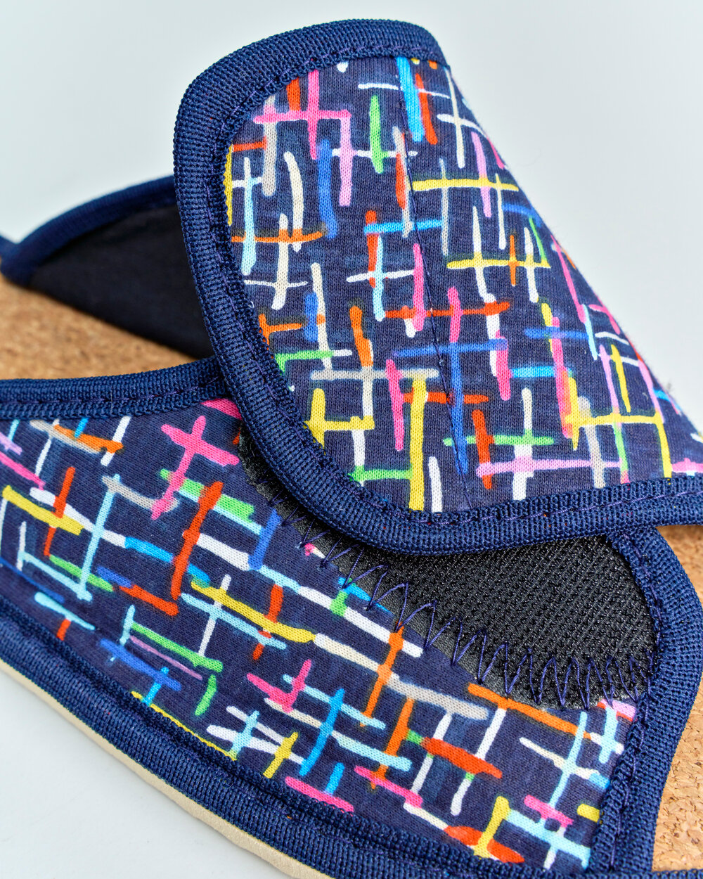 Женские домашние тапочки "LepiloV", открытые, на пробковой стельке и липучке. Размер 40. Синий горох, цветы.