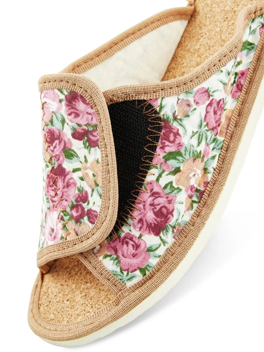 Женские домашние тапочки "LepiloV", открытые, на пробковой стельке и липучке. Размер 39. Сине-бежевые розы.