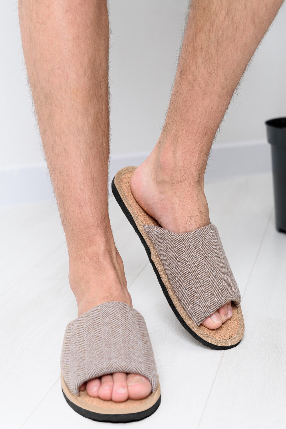 Мужские домашние тапки "LepiloV", открытые, на пробковой стельке. Размер 39. Бежевая ёлка.