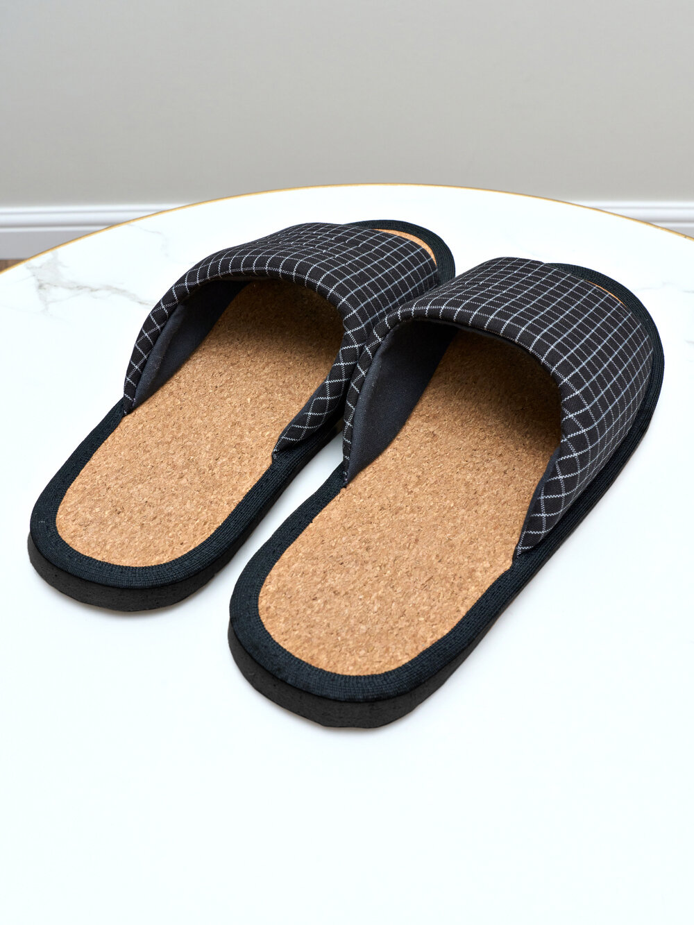 Мужские домашние тапки "LepiloV", открытые, на пробковой стельке. Размер 45. Серая клетка.