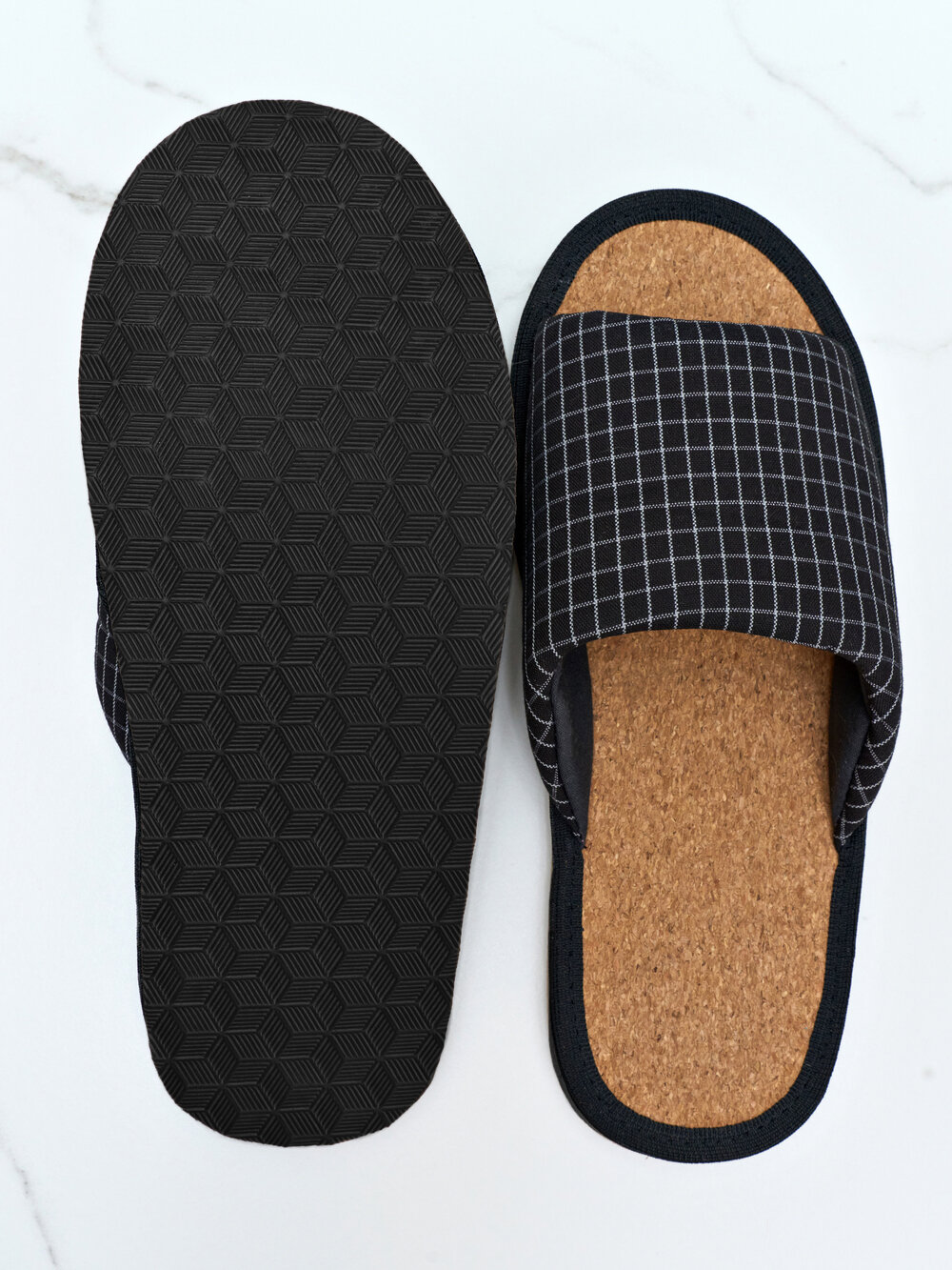 Мужские домашние тапки "LepiloV", открытые, на пробковой стельке. Размер 44. Серая клетка.