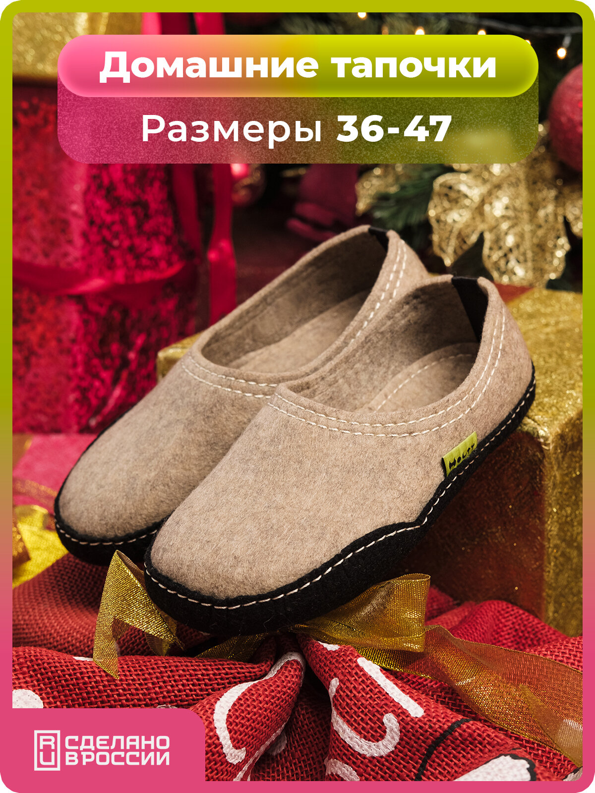 Тапочки войлочные Холти Анадырь теплые домашние женские тапки из искусственного войлока (40), светло-коричневый