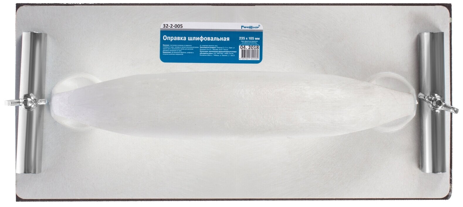 Брусок для наждачной бумаги с металлическими зажимами 105 х 230 мм