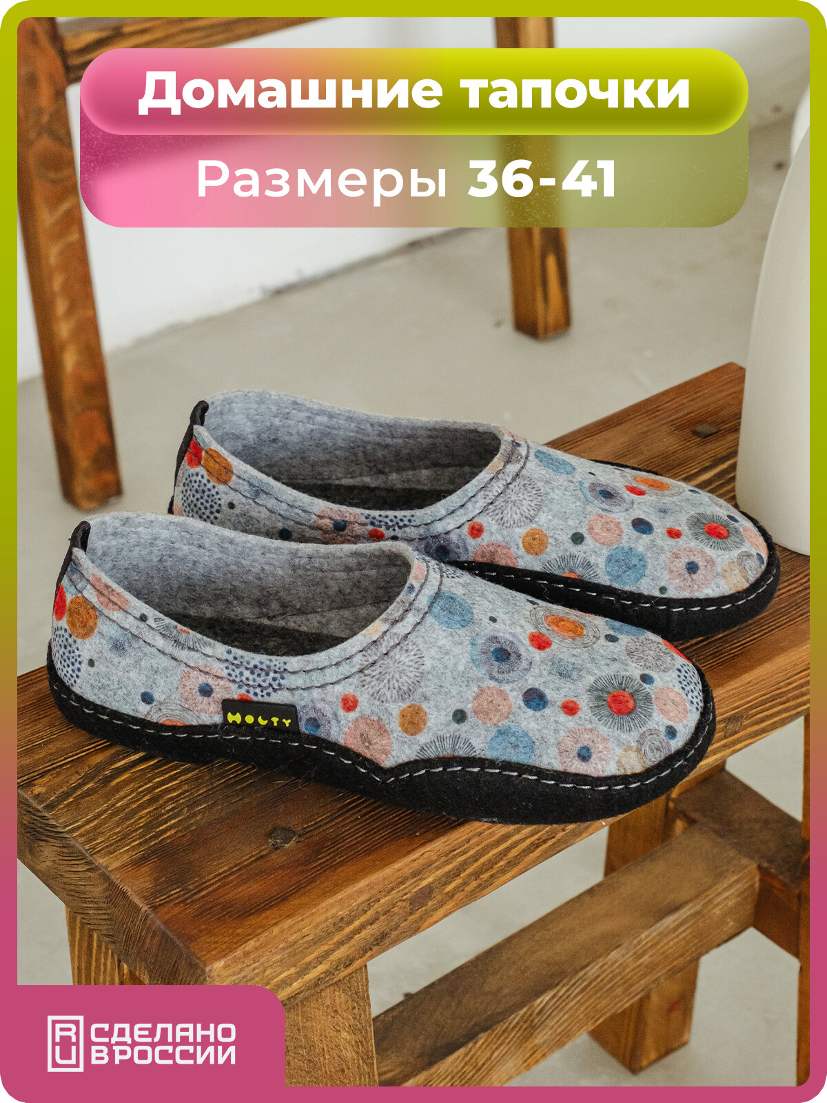 Тапочки войлочные Холти Планеты теплые домашние женские тапки из искусственного войлока (р. 39), серый
