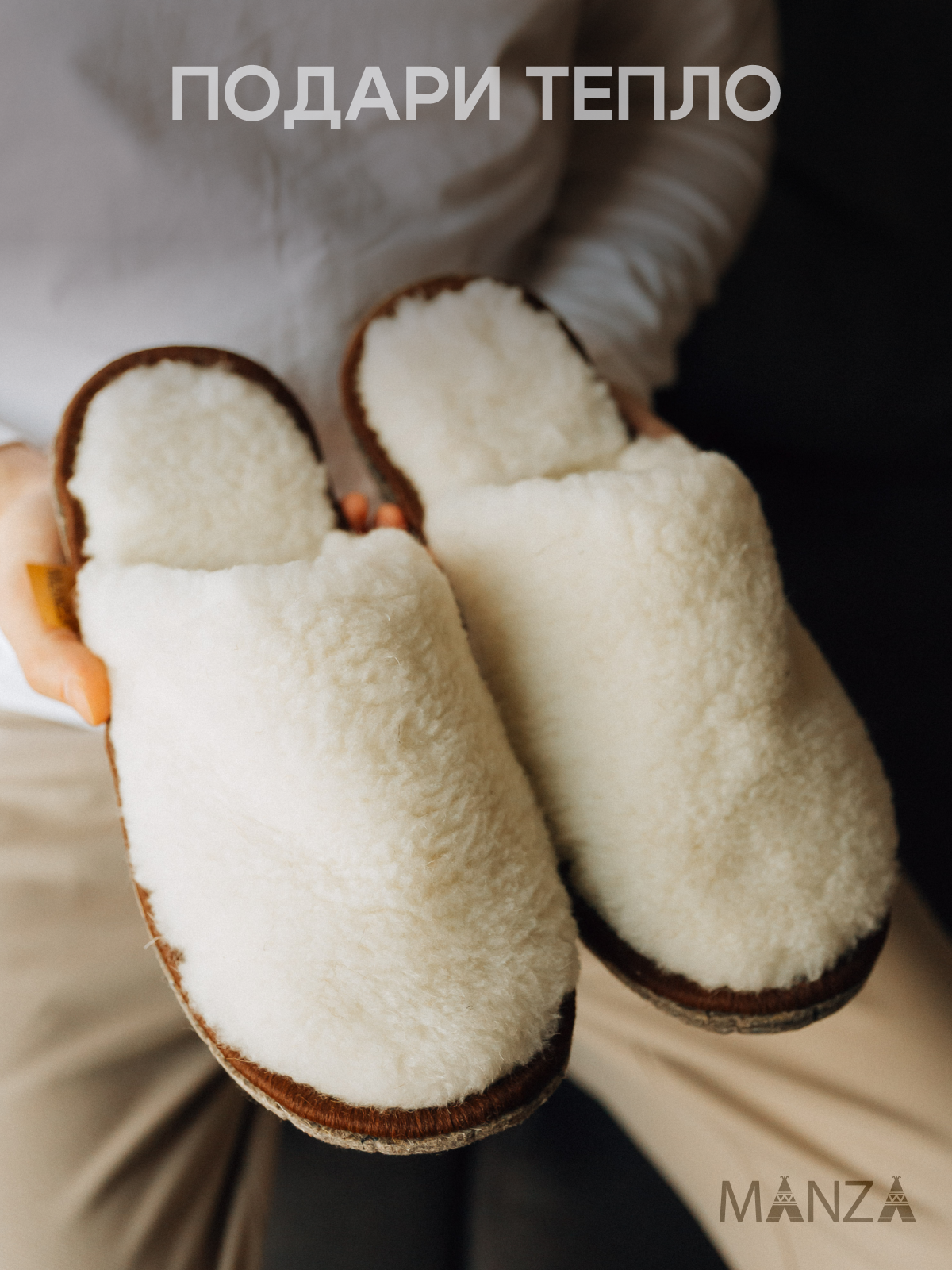 Купить Тапочки Manza из овечьей шерсти, размер 45-46, белый