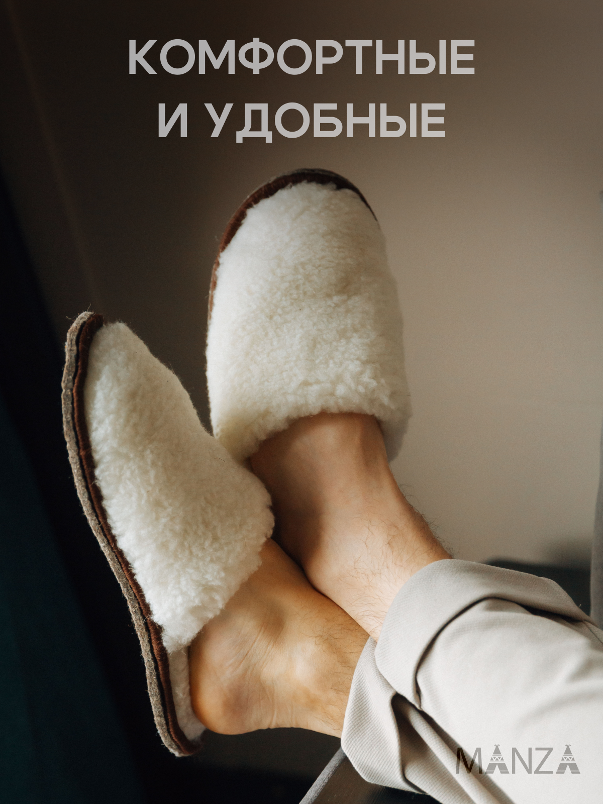 Тапочки Manza из овечьей шерсти, размер 47-48, бежевый