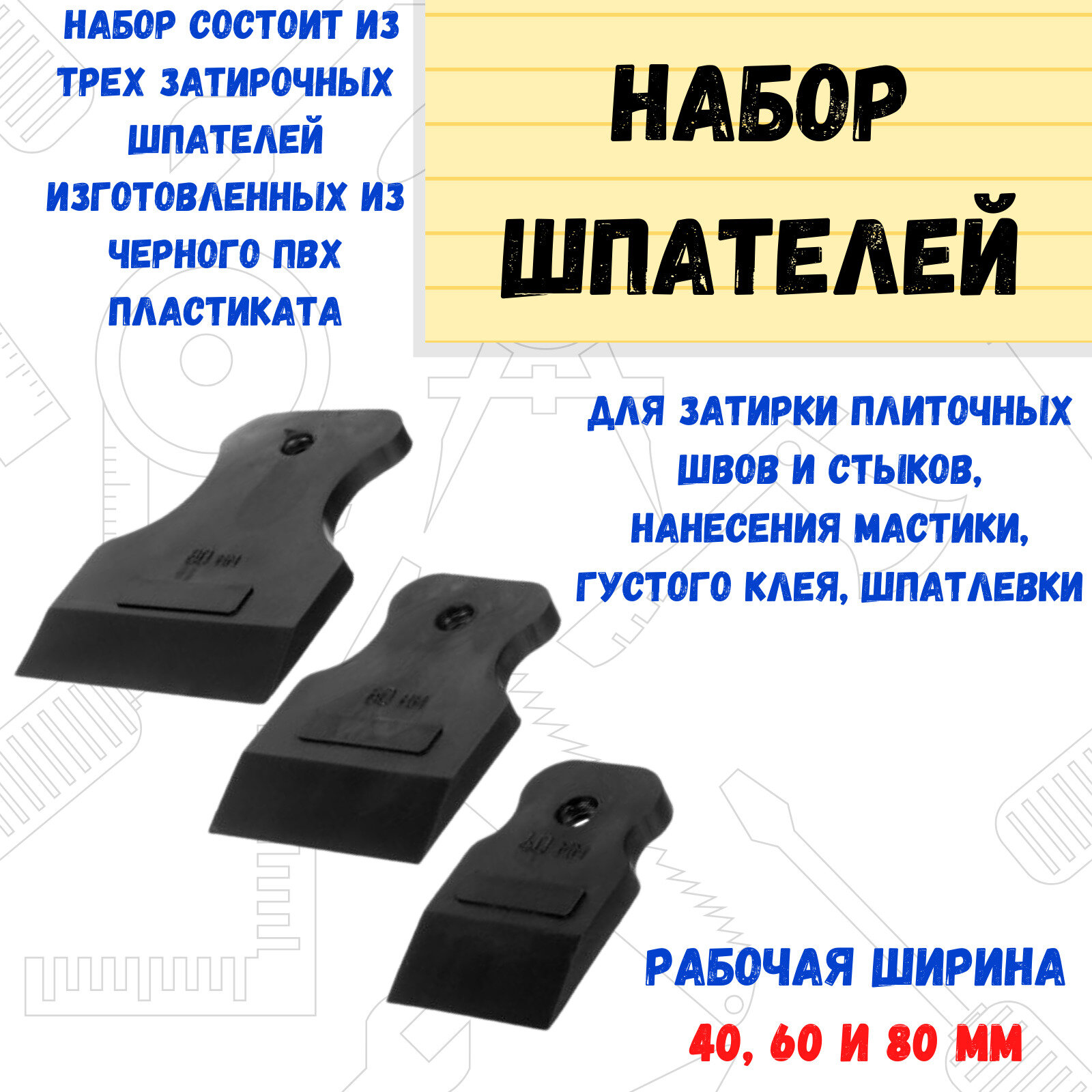 Купить Набор шпателей 3 предмета черная резина 40, 60, 80 мм. 12-2-103