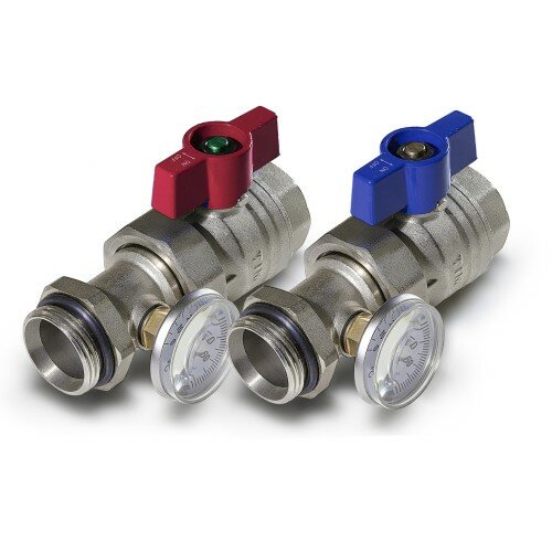 Комплект прямых шаровых кранов TIM с термометрами M308-4