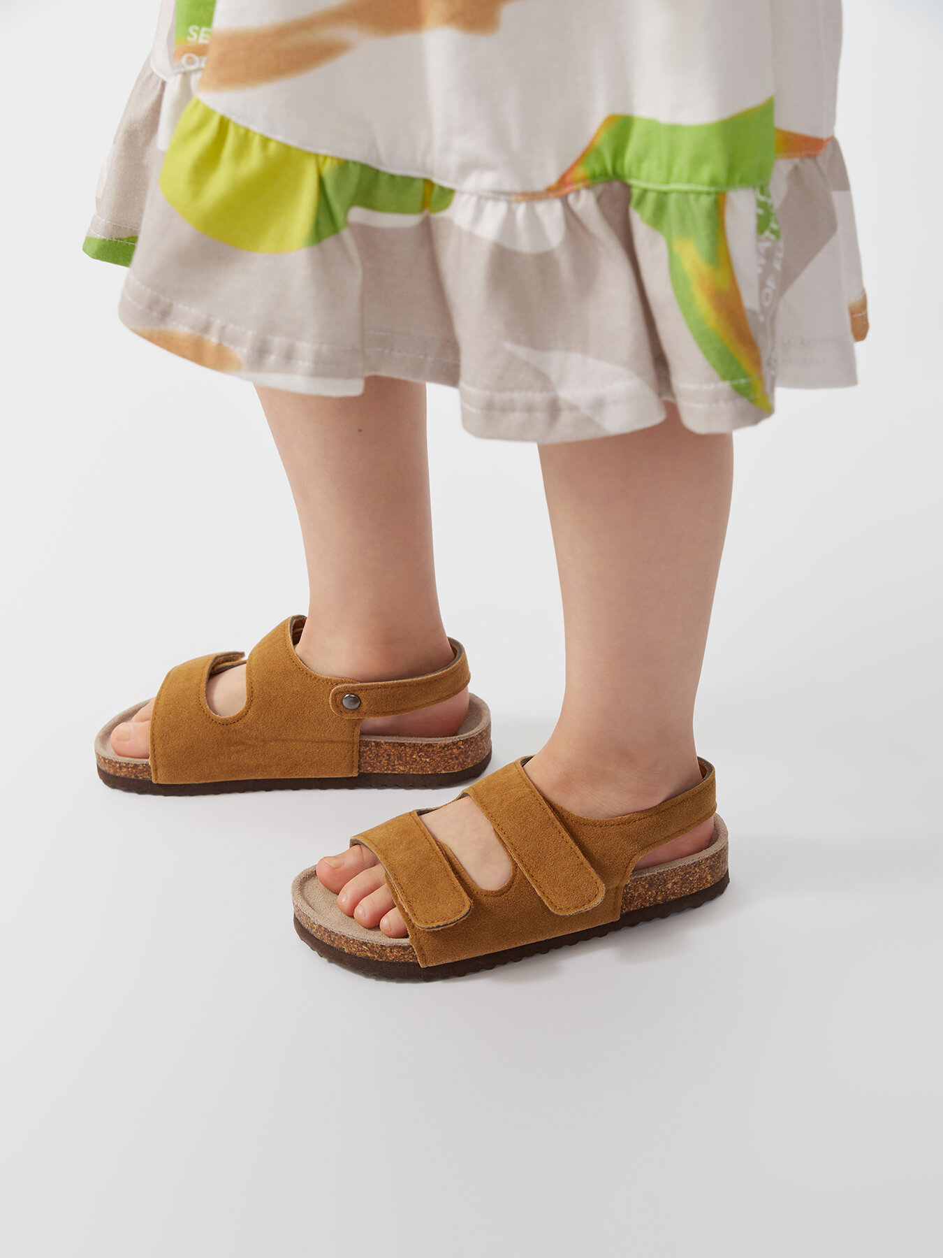86506, Сандалии детские Happy Baby, сандалии для девочки и мальчика, босоножки летние детские замшевые, износостойкие, коричневый цвет, размер 24