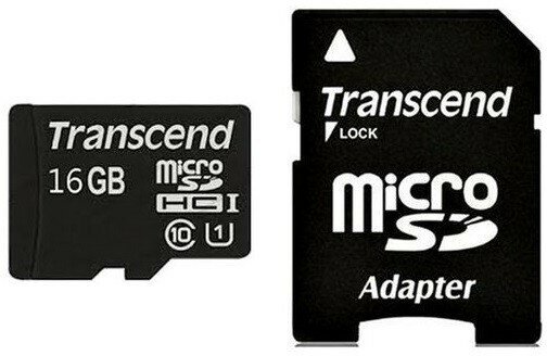 MicroSD 16GB Transcend Class 10 +SD адаптер