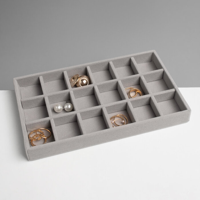 Подставка для украшения 18 ячеек, флок, 21x12.3x2.5 см, цвет серый