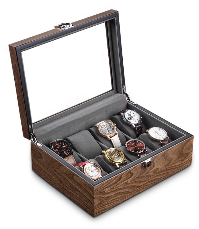 Шкатулка из орехового дерева для 10-ти часов со стеклянной крышкой