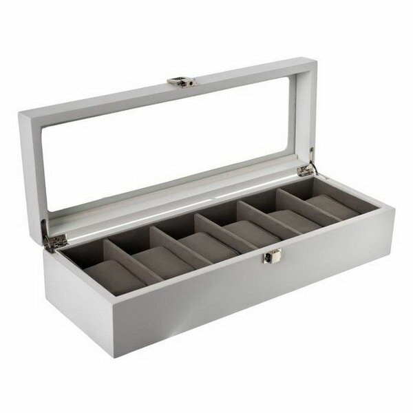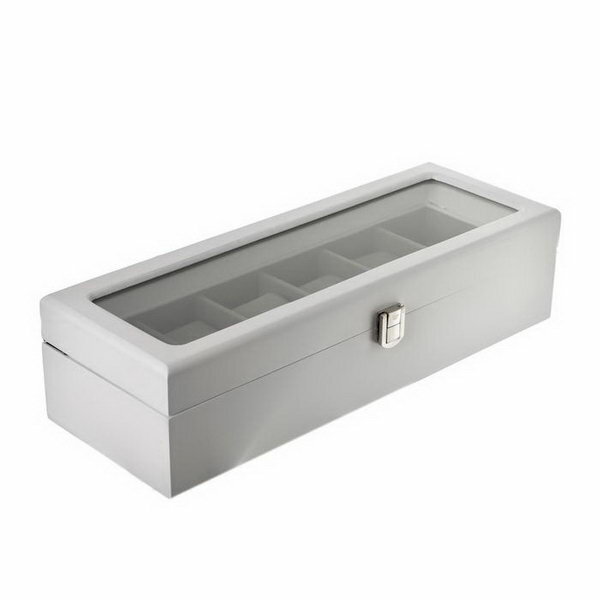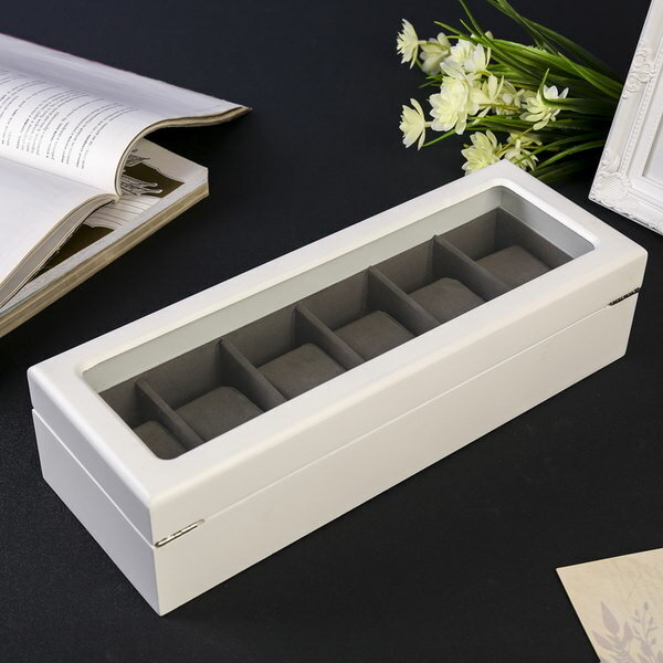 Шкатулка дерево под часы 6 отделений "Стиль" белая 12.7х8х33 см