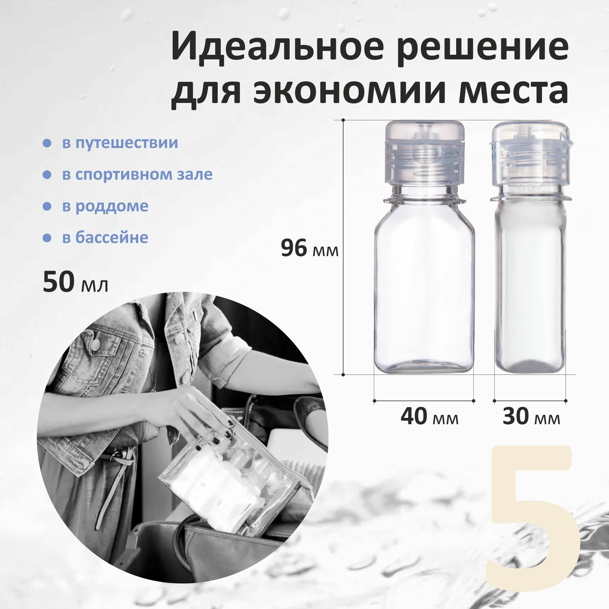 Дорожный набор флаконов 5 шт и наклейки в подарок