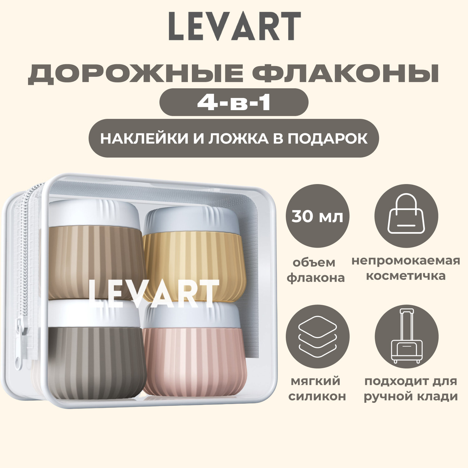 Дорожный флакон LEVART, 4 шт., 90 мл, размер L, бежевый