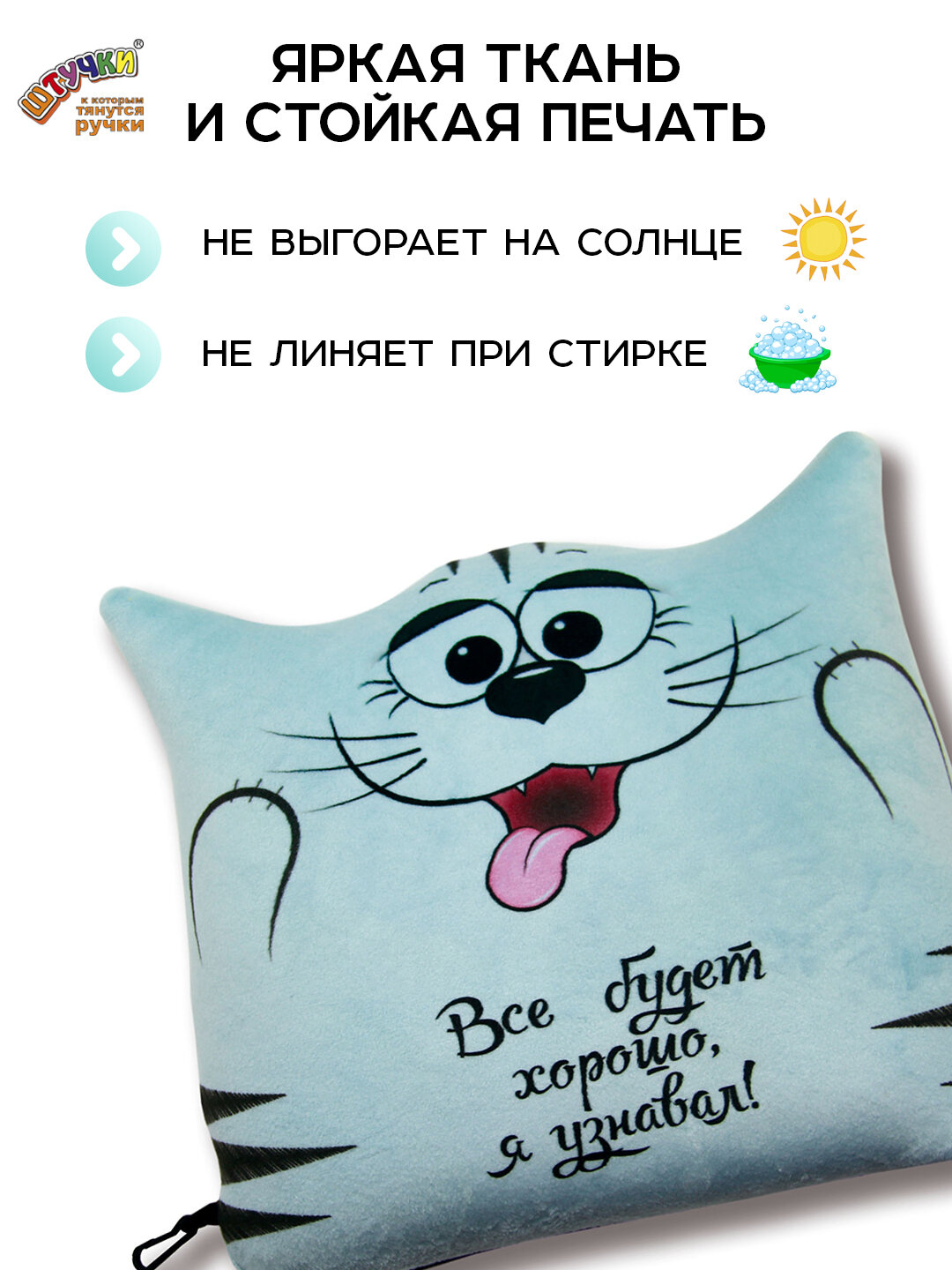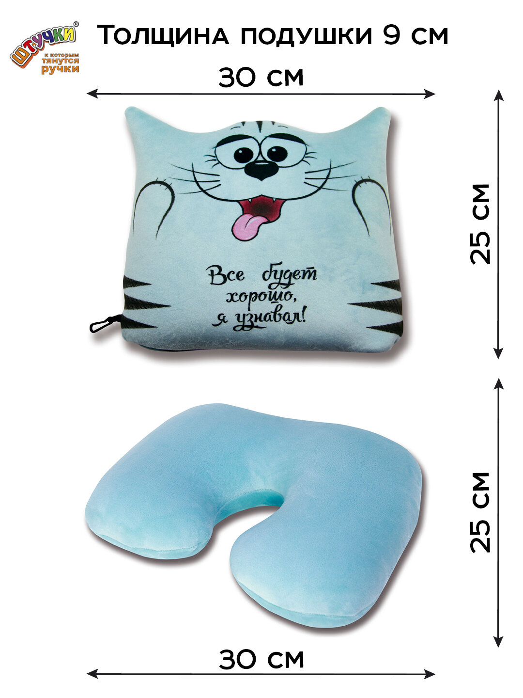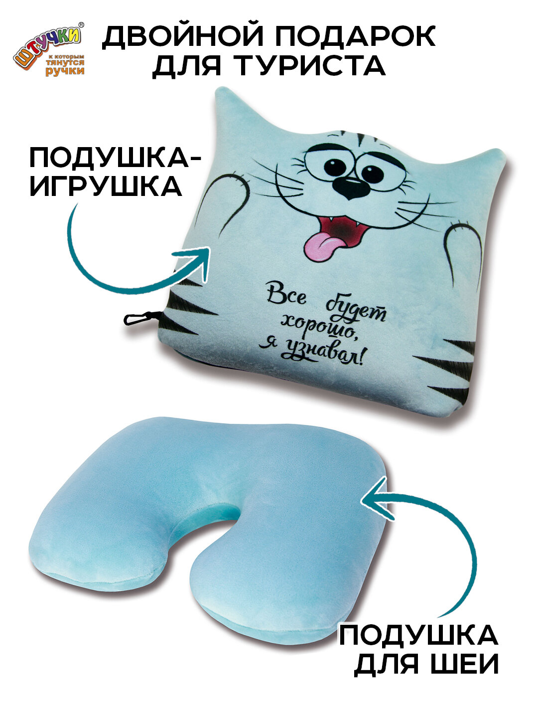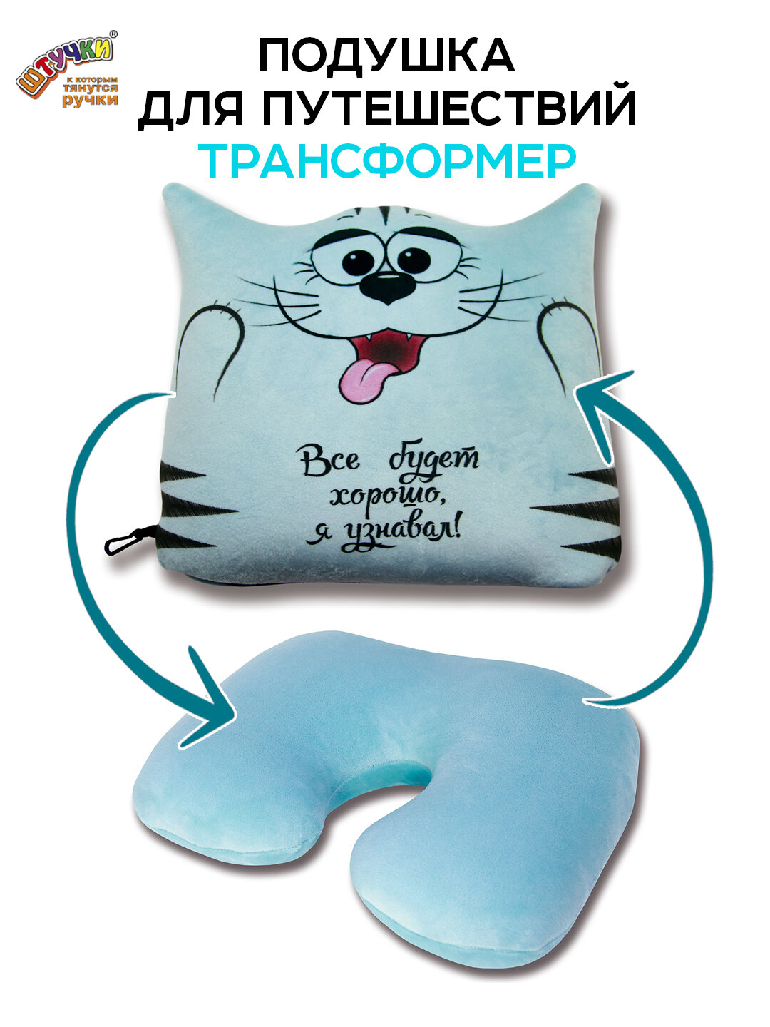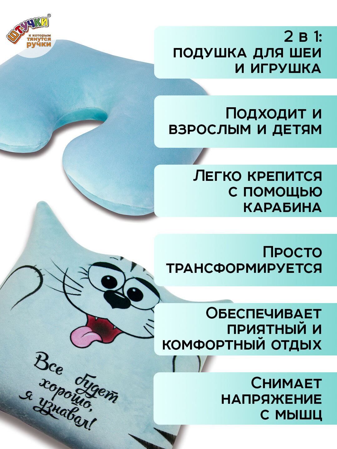 Подушка для шеи-антистресс Штучки, к которым тянутся ручки Трансформер Котик, голубой