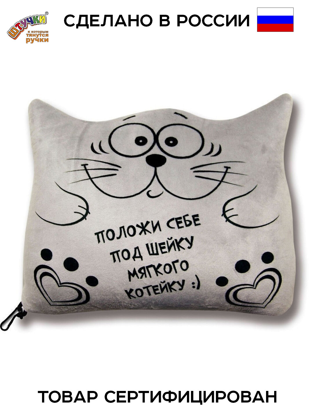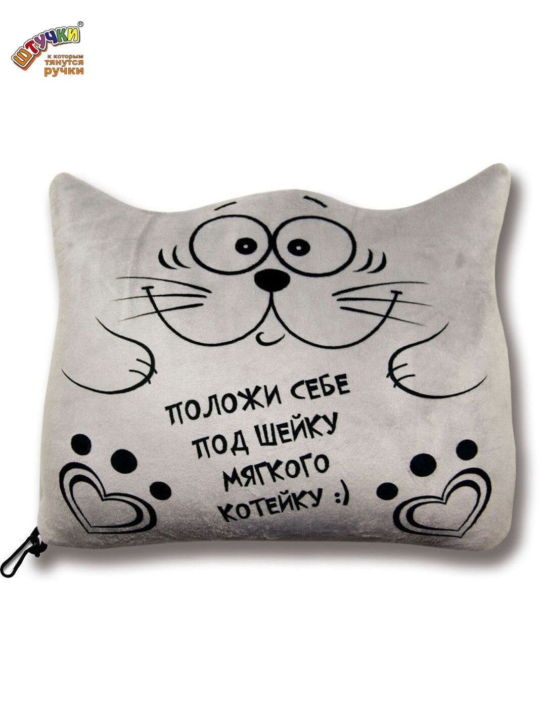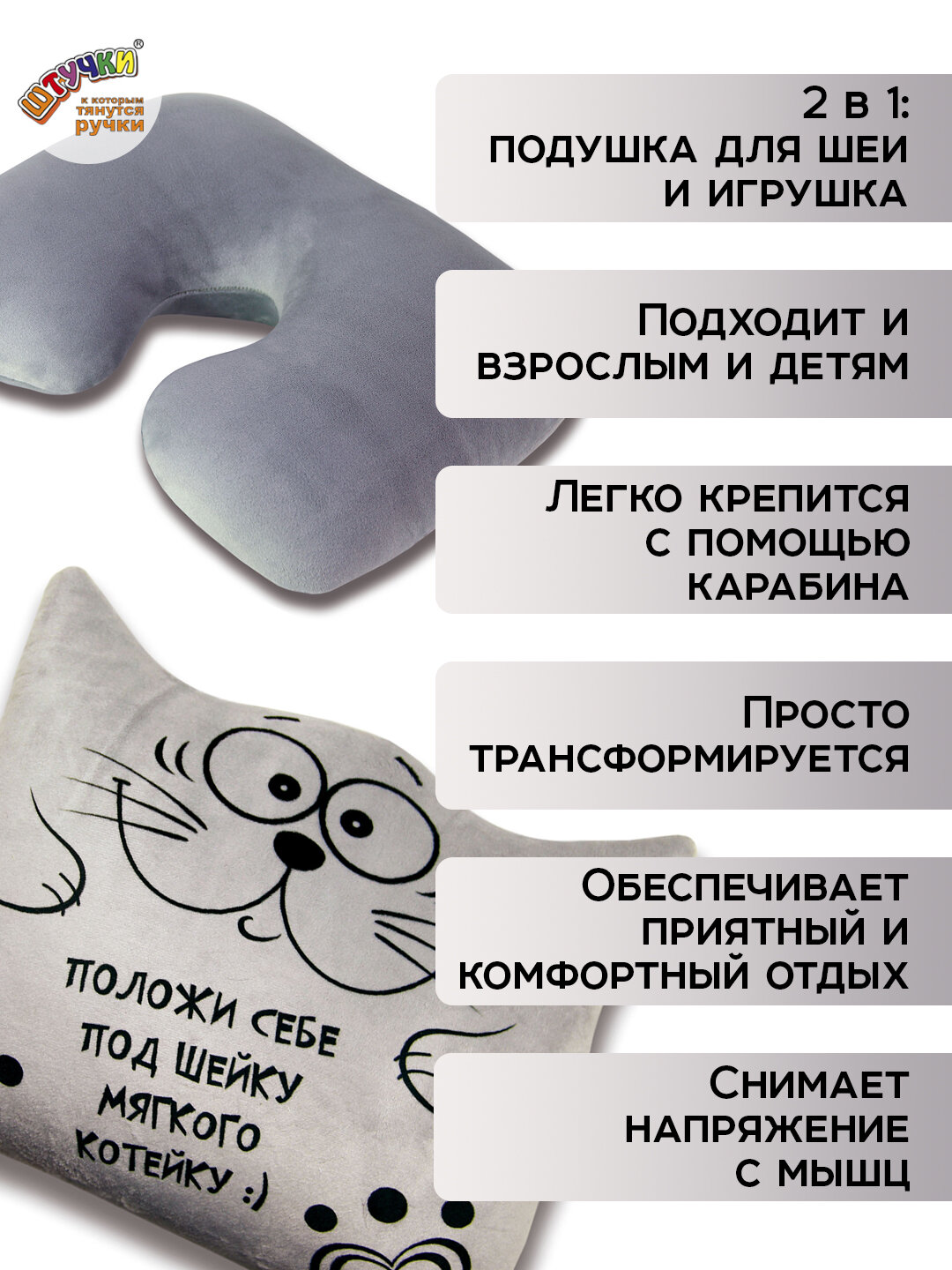 Подушка для шеи-антистресс Штучки, к которым тянутся ручки Трансформер Котик, серый
