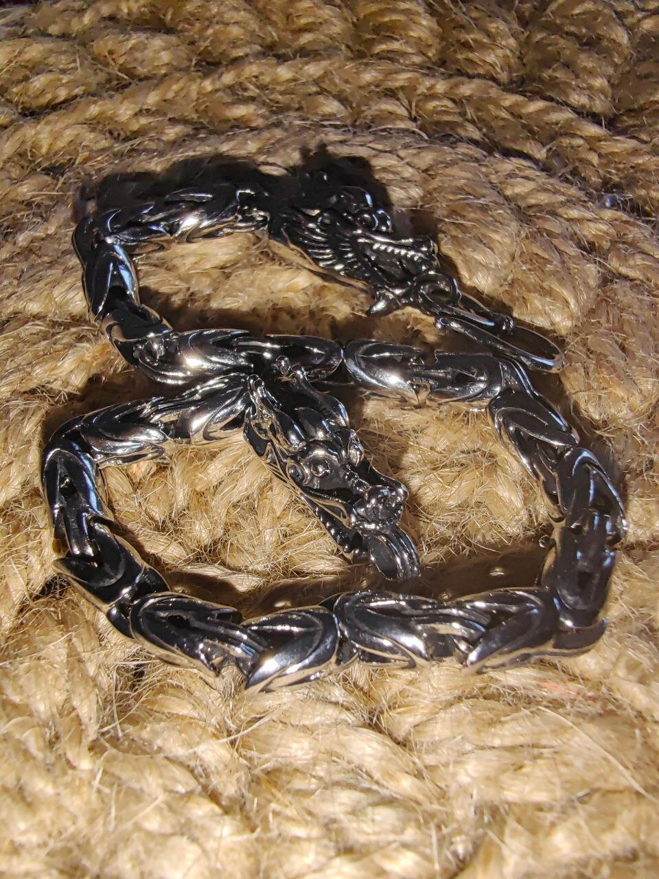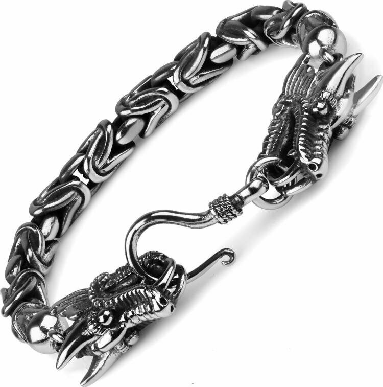 Браслет-цепочка ДРАКОН, 1 шт., размер 20 см, размер L, диаметр 6 см, серебристый интересное: