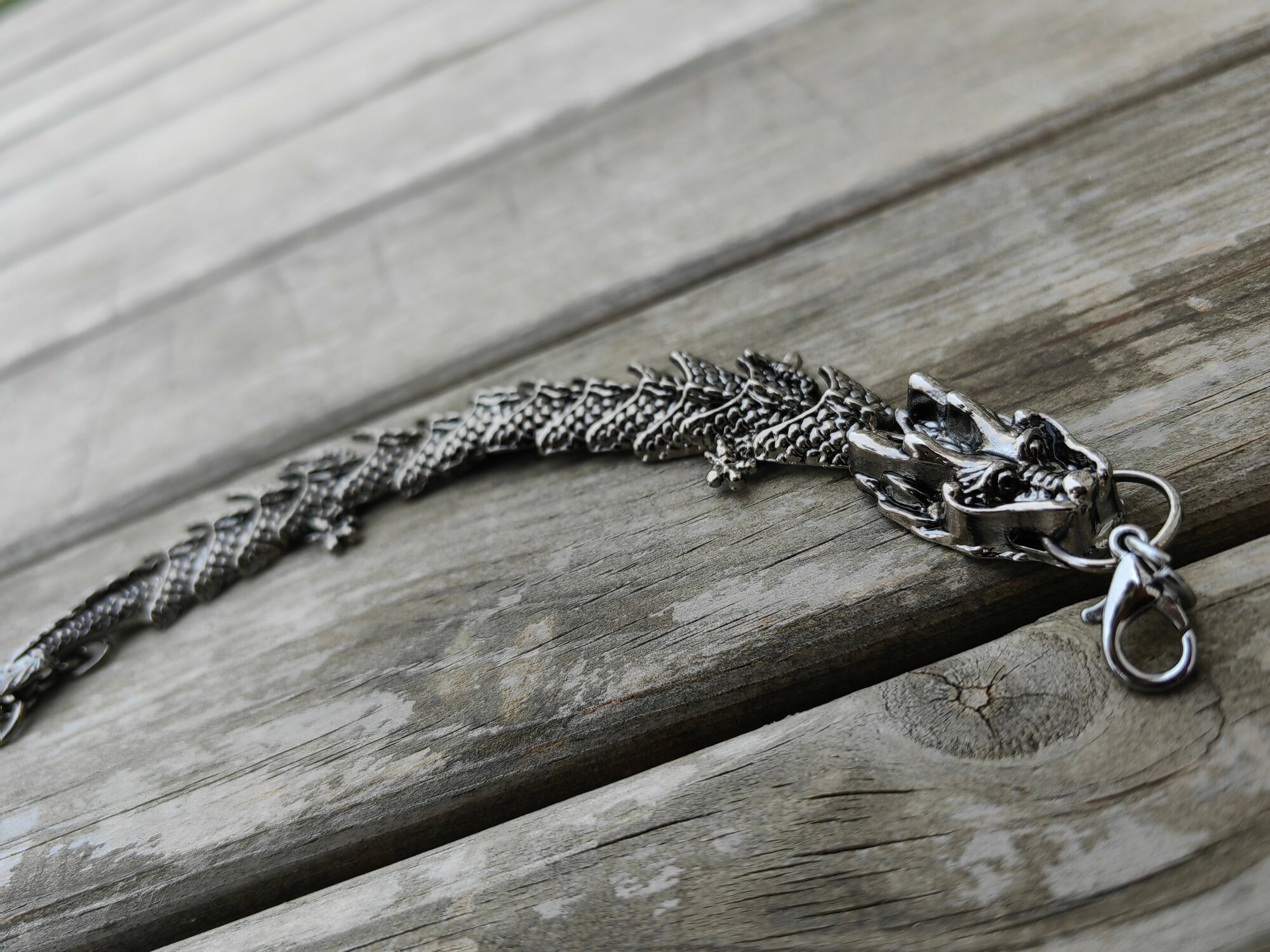 Браслет-цепочка ДРАКОН, 1 шт., размер 20 см, размер L, диаметр 6 см, серебристый