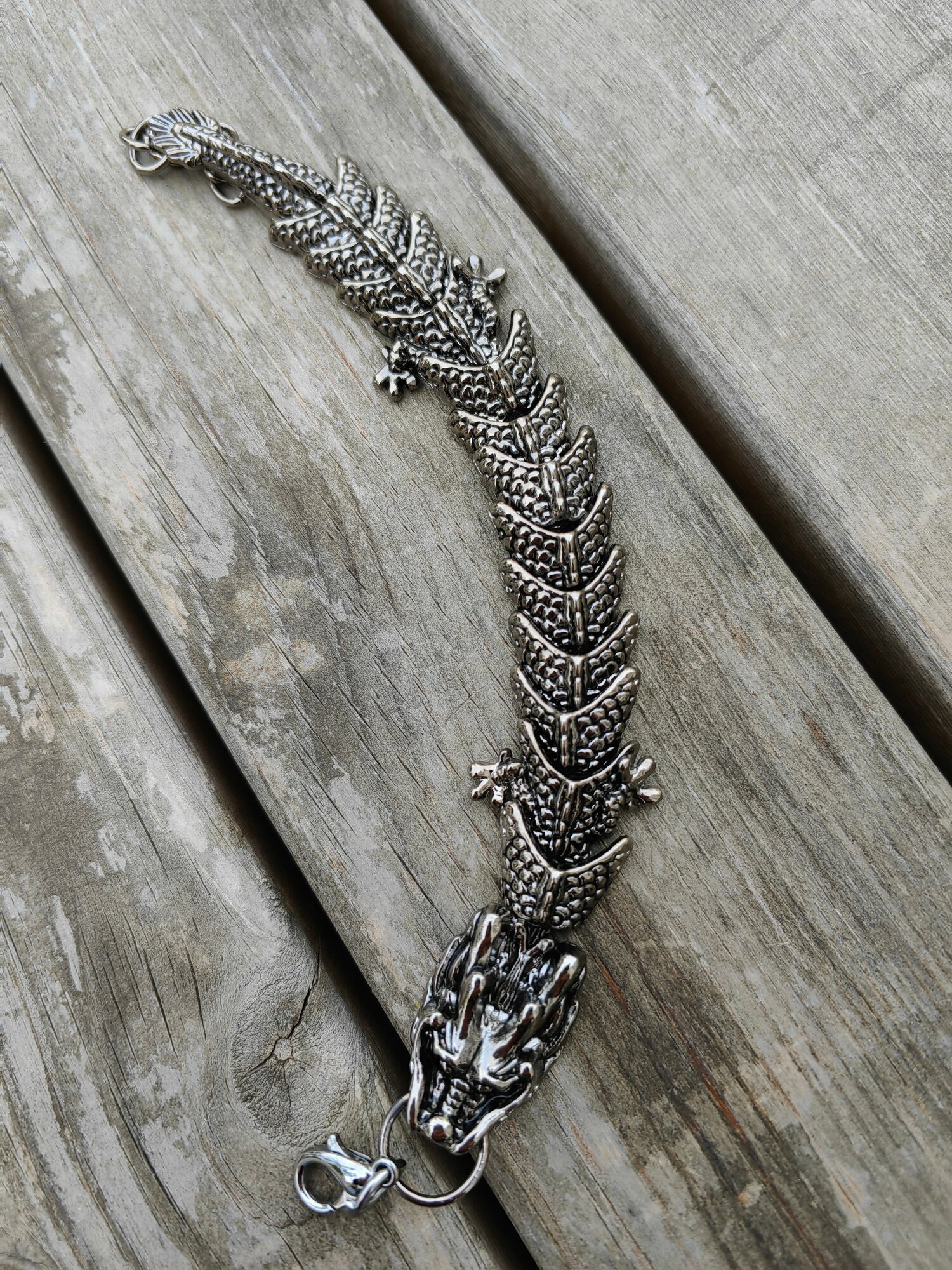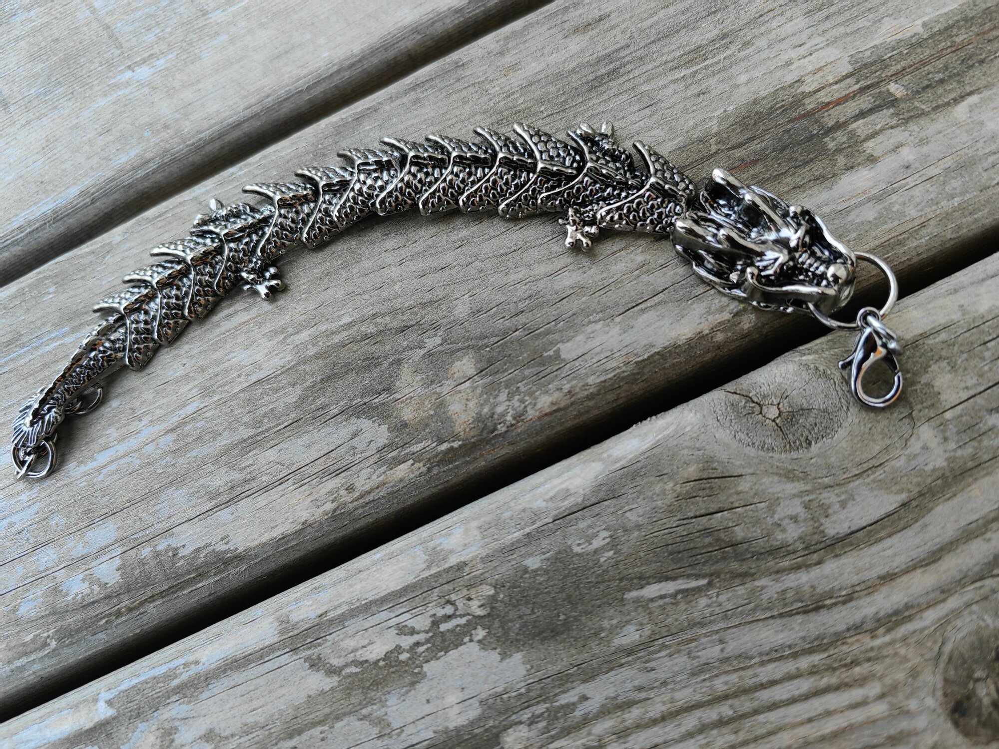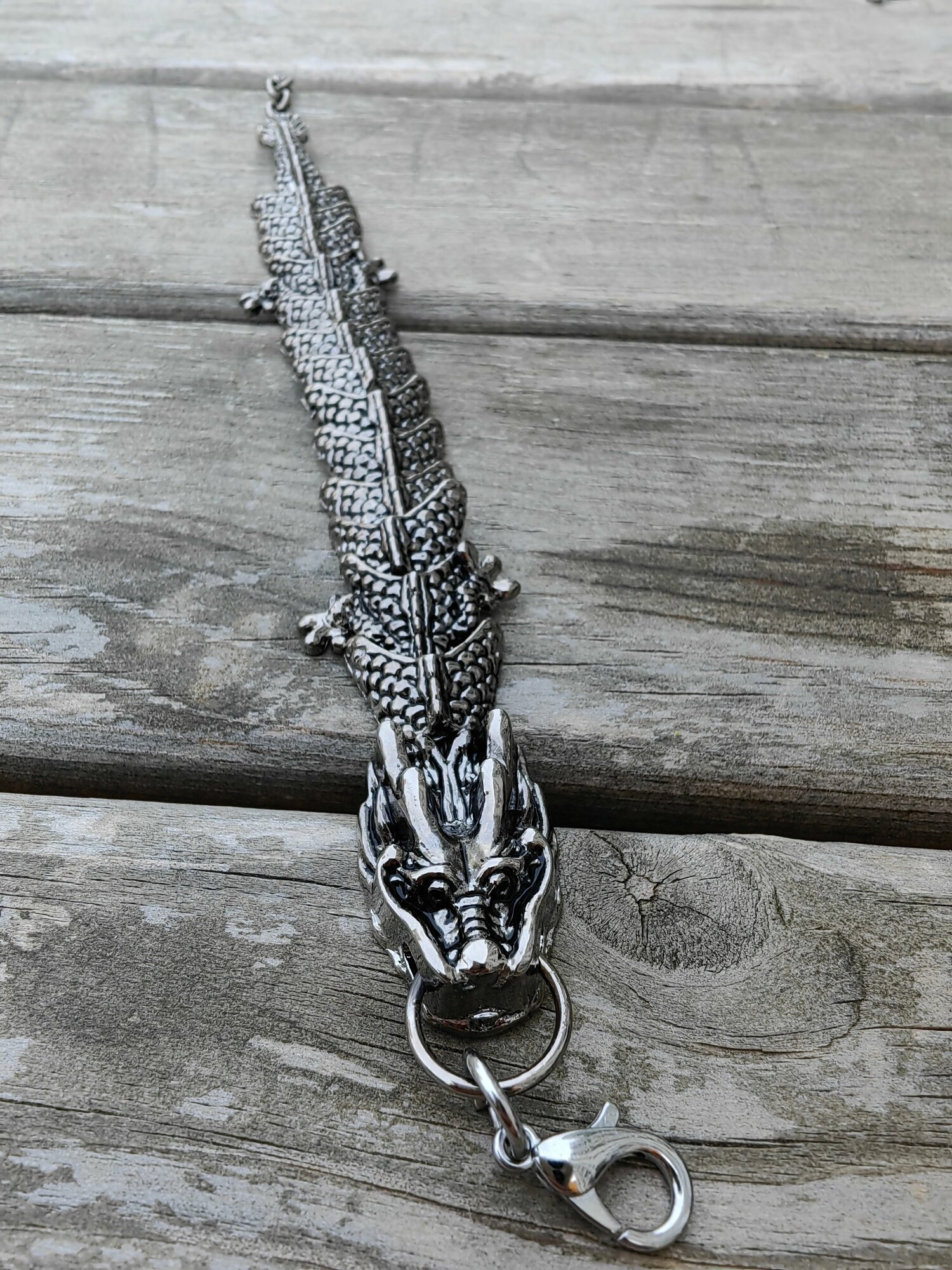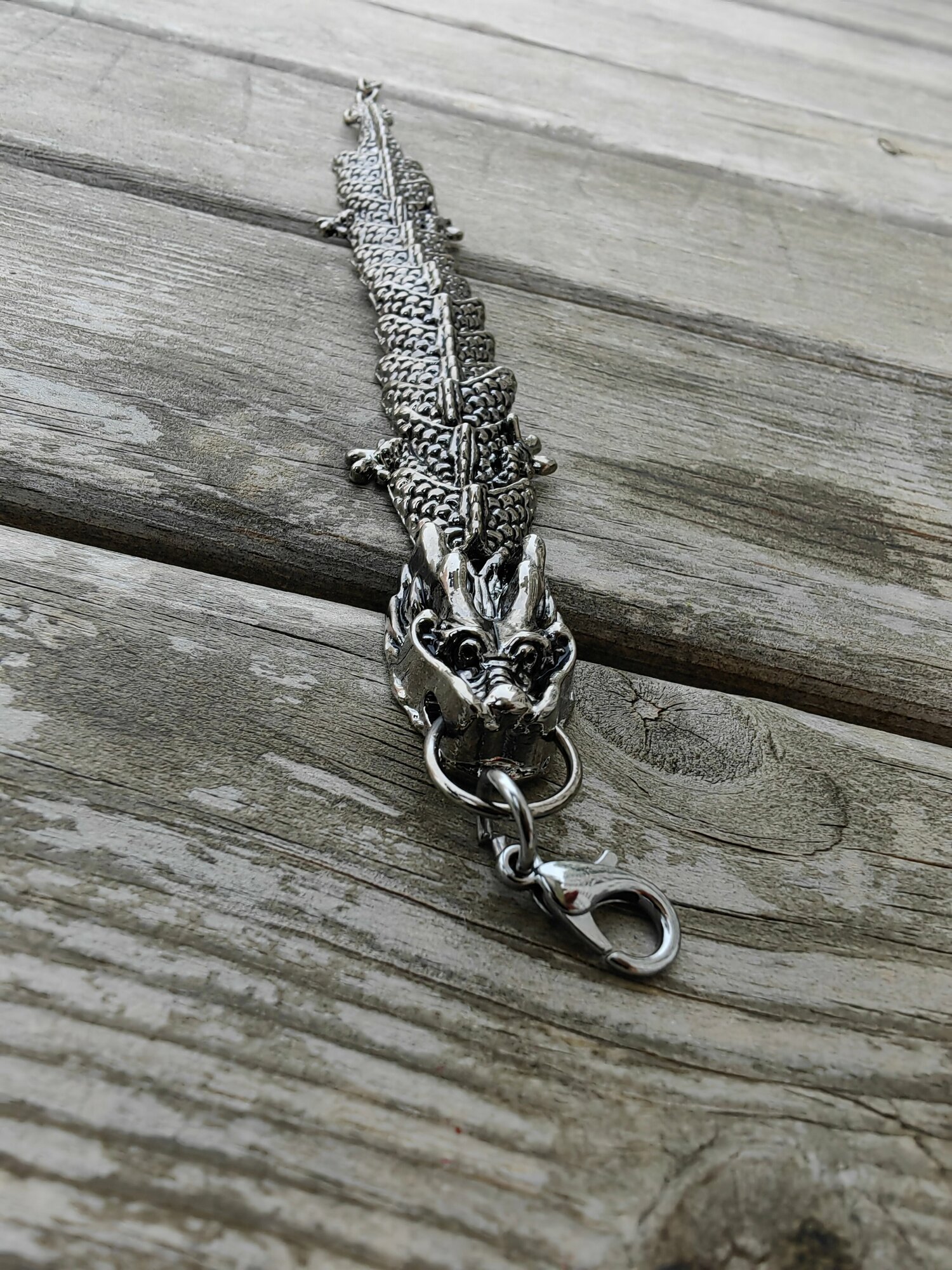 Браслет-цепочка ДРАКОН, 1 шт., размер 20 см, размер XL, диаметр 10 см, серебристый
