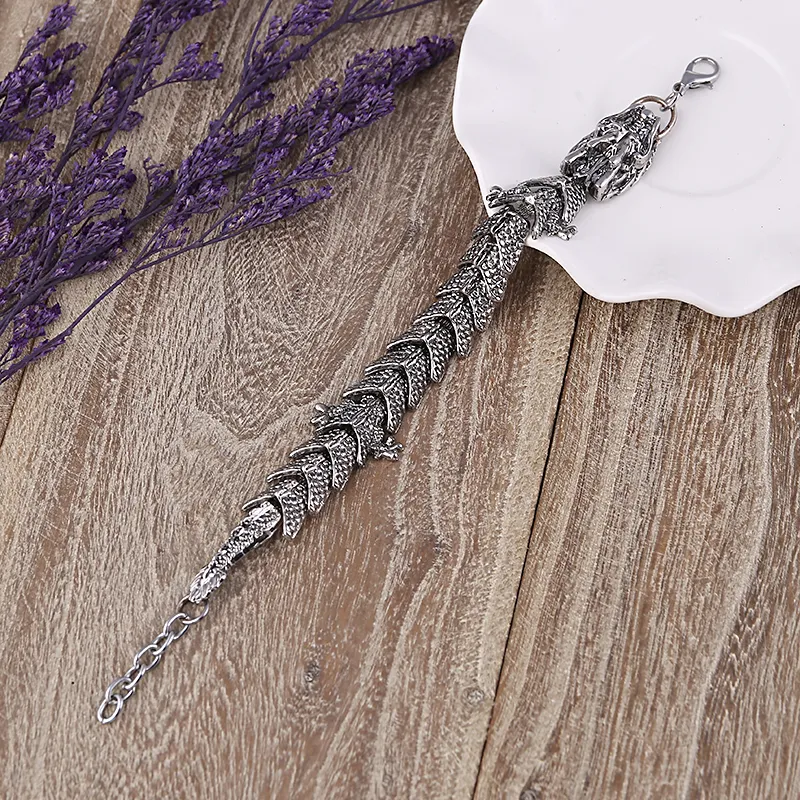 Браслет-цепочка ДРАКОН, 1 шт., размер 21 см, размер XL, диаметр 10 см, серебристый